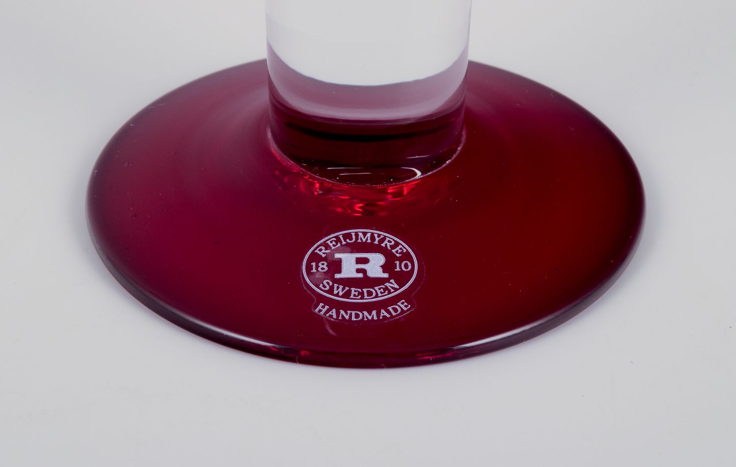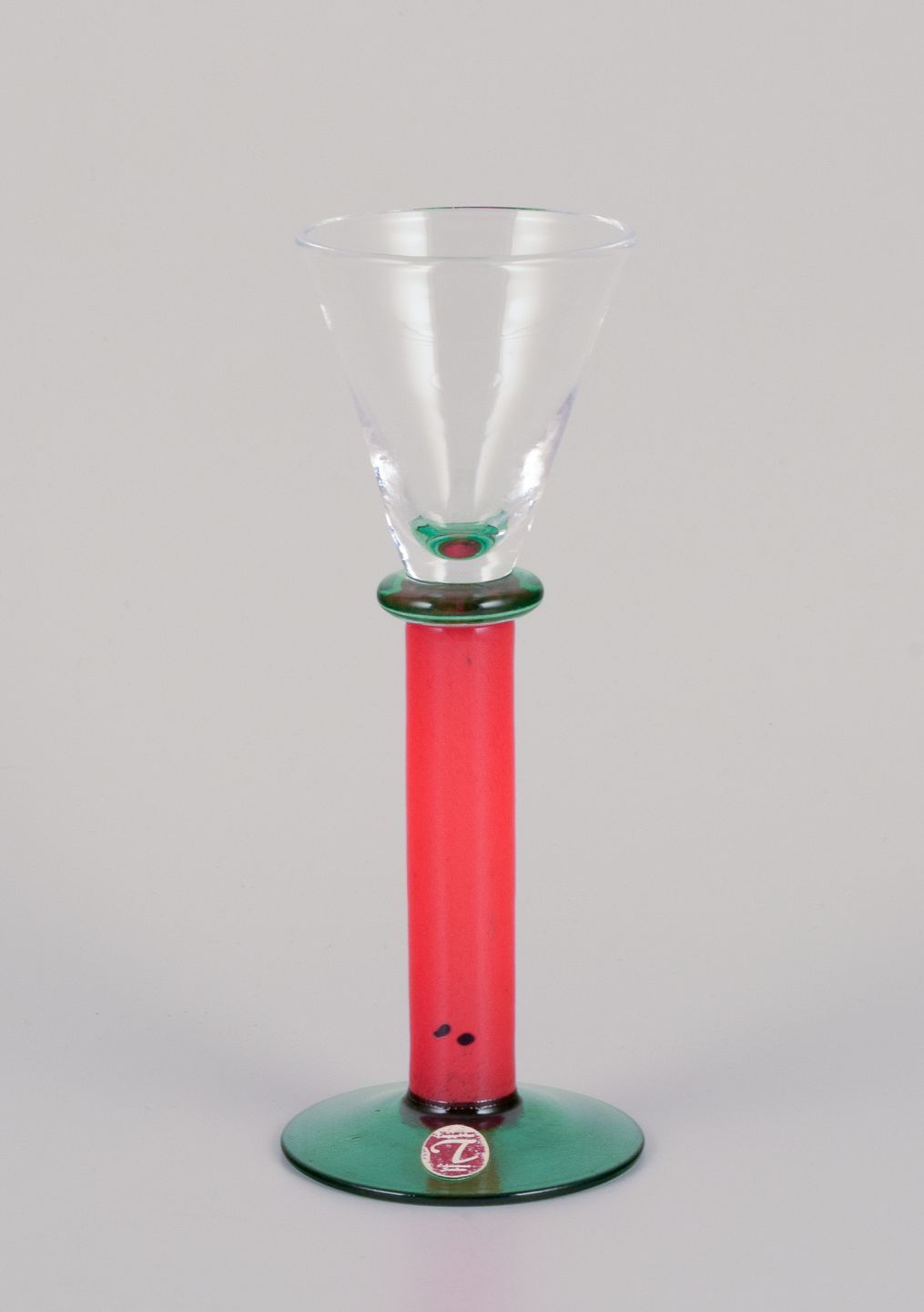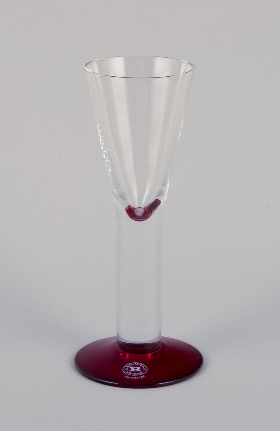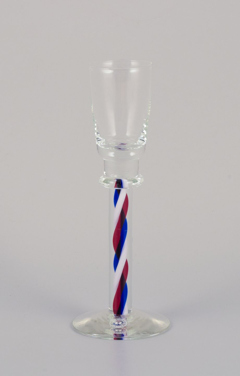 Margareta Hennix for Reijmyre, Sverige. Et sæt på fire snapseglas. Håndlavet og mundblæst kunstglas. Forskelligfarvet.