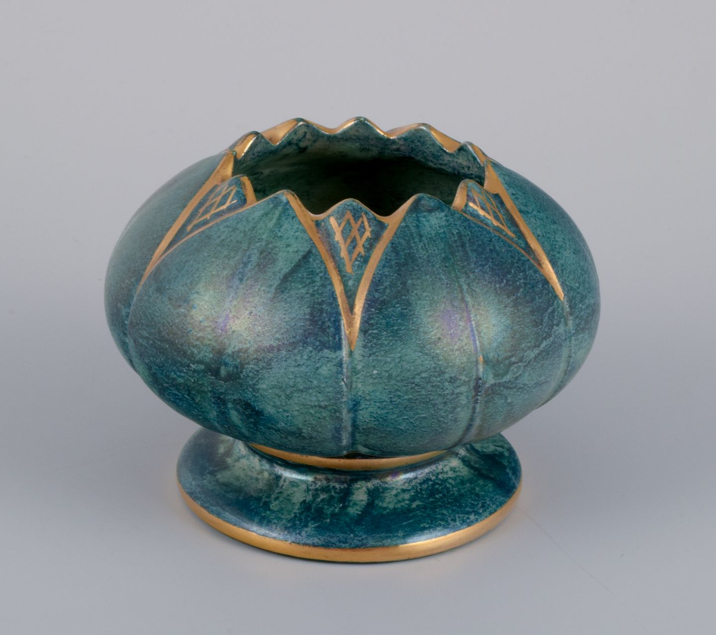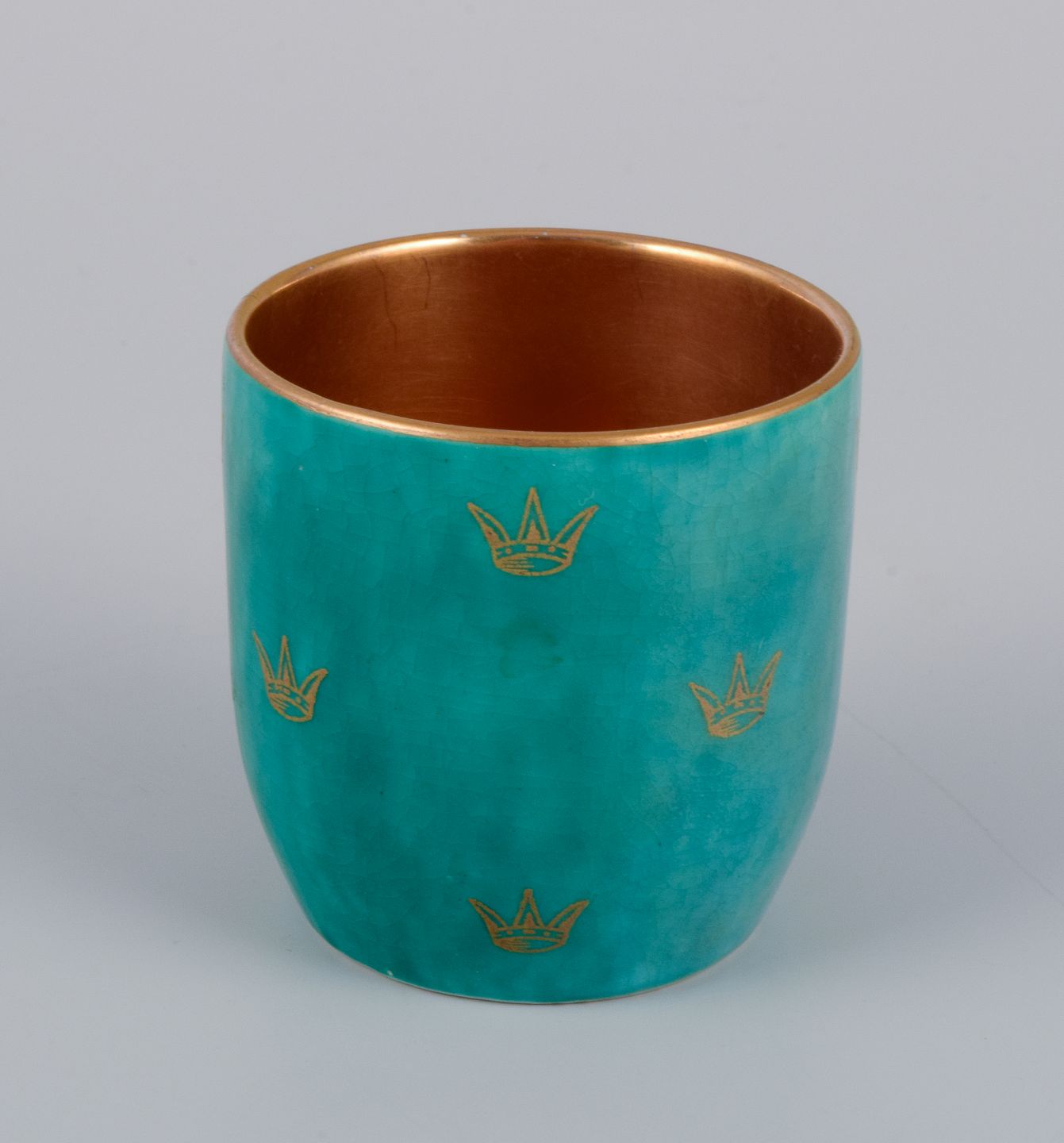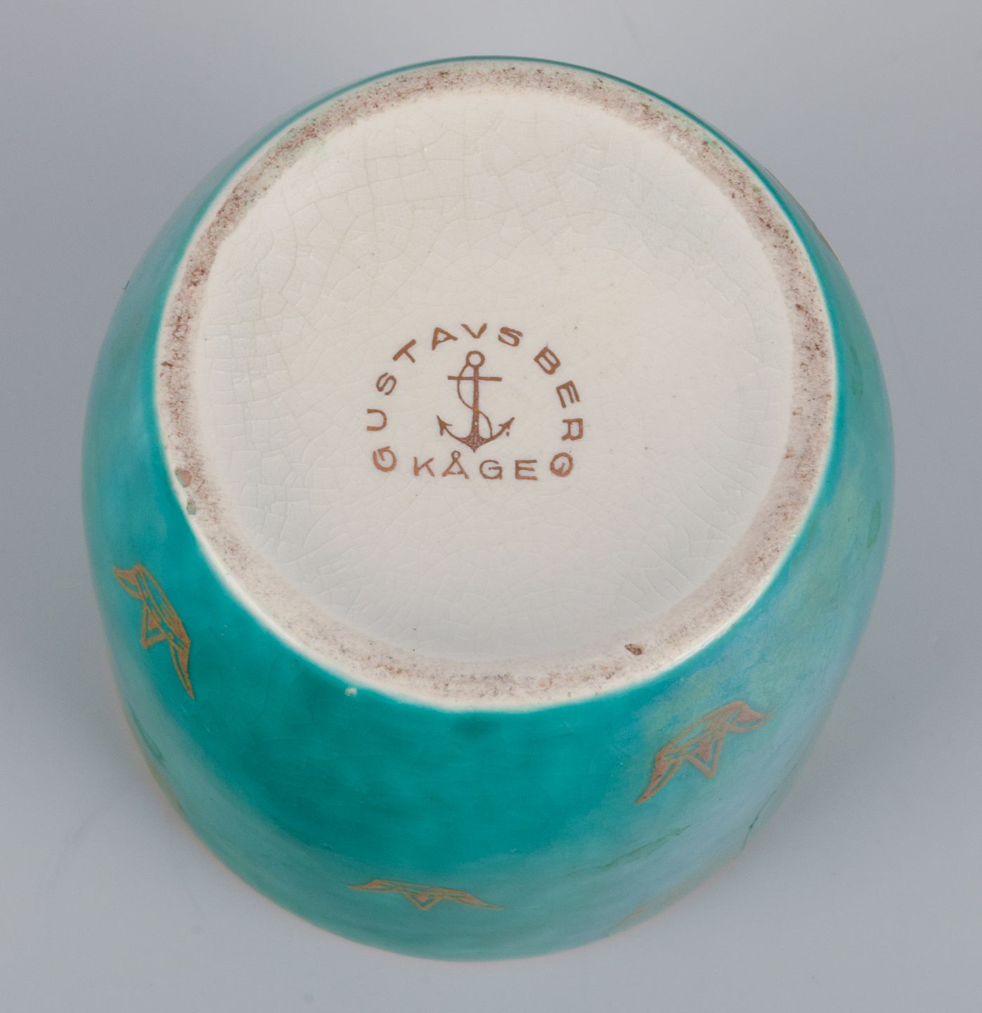 Josef Ekberg og Wilhelm Kåge for Gustavsberg, Sverige. Tre små vaser i forskellige størrelser. Grøn glasur med blomstermotiver indlagt i sølv og guld.