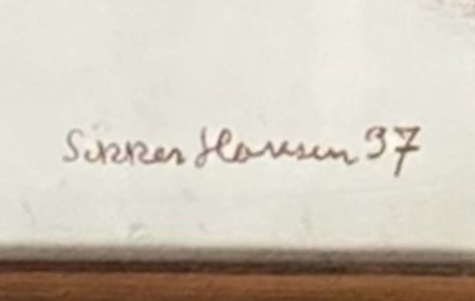 Aage Sikker Hansen. Litografisk tryk i original fyrretræsramme.