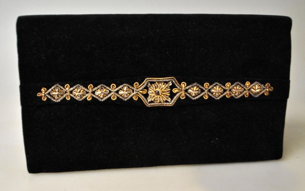 Zardozi Guld broderet fløjls selskabs taske, Ganeshi Lall & Son, Agra, Indien, 20. årh.
