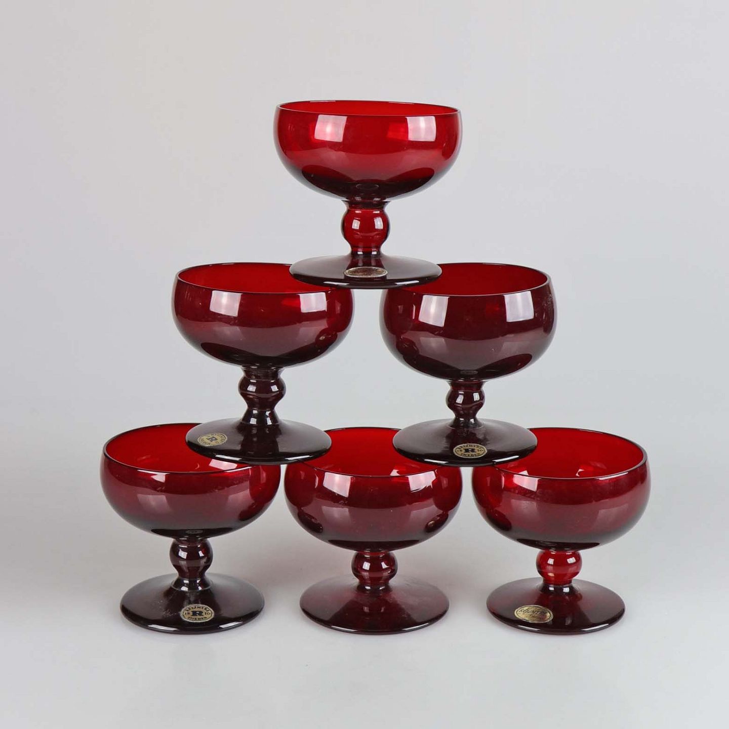 6 stk likørglas i dyb rød farve