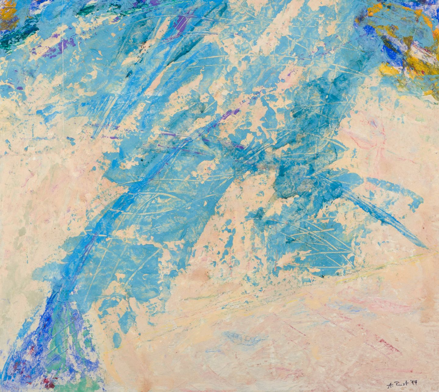 A. Rust, tysk kunstner. Akrymaling på træplade. Abstrakt komposition.
