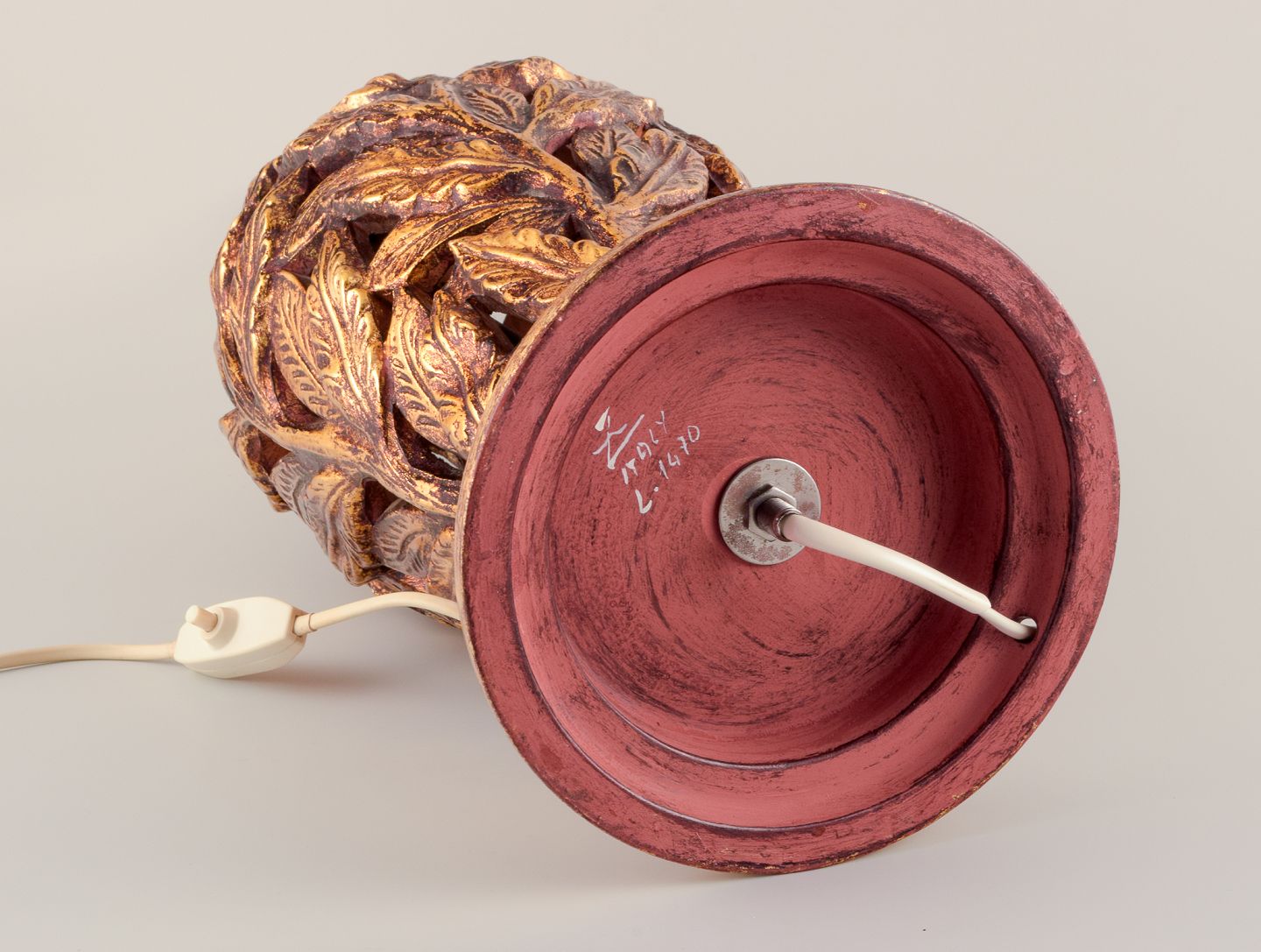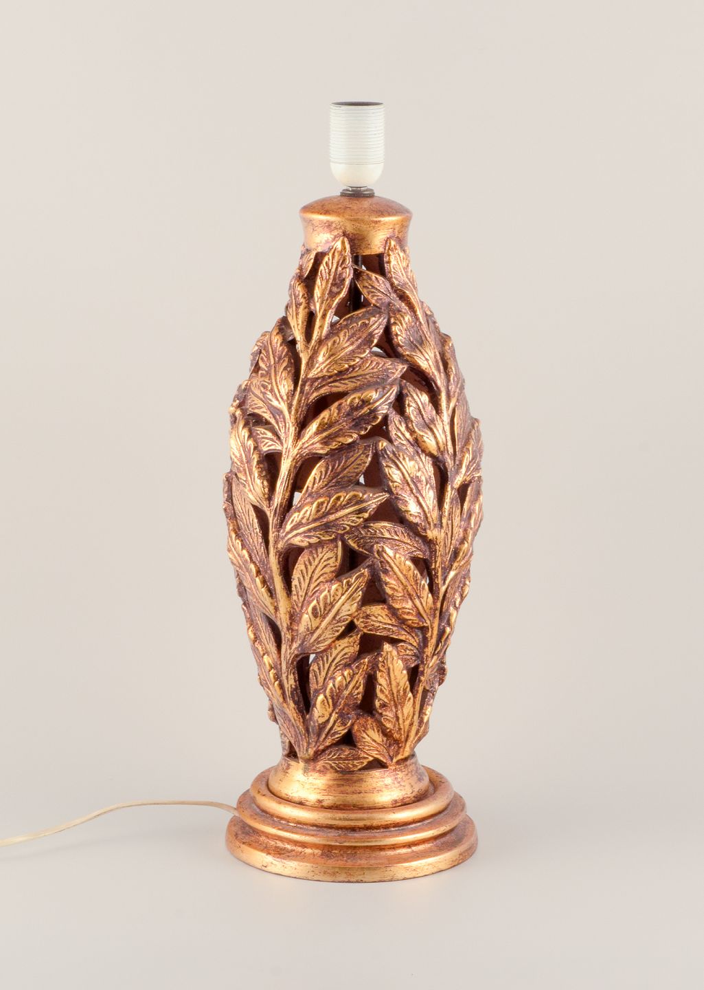 Stor italiensk bordlampe i keramik. Udformet som grene med gulddekoration.