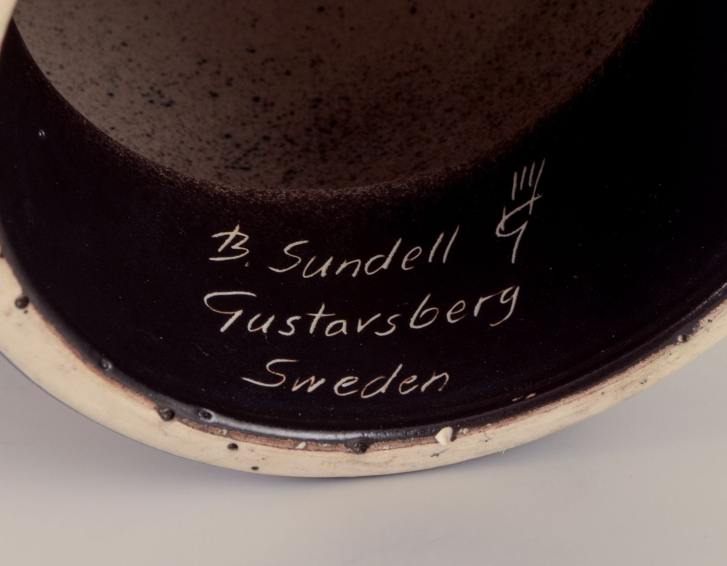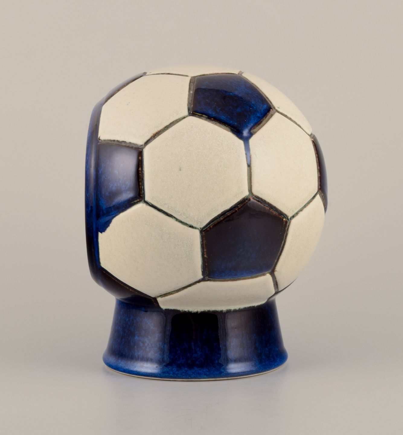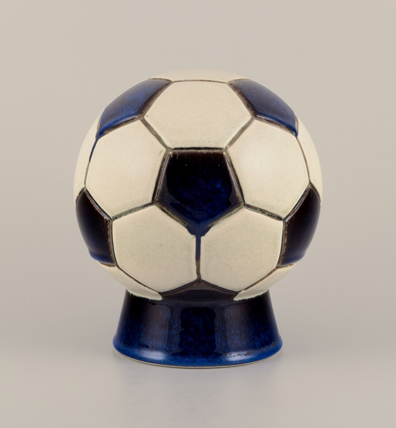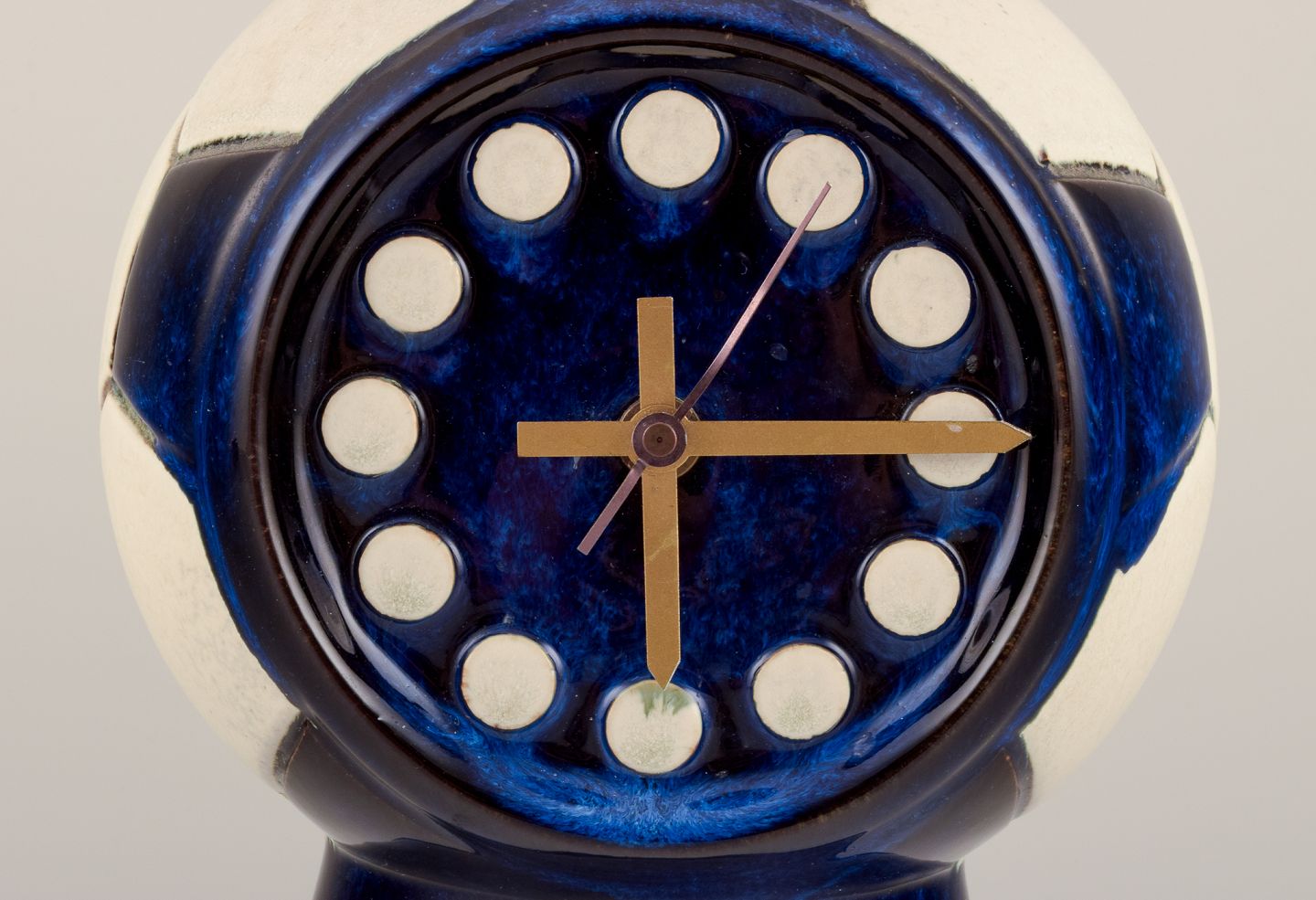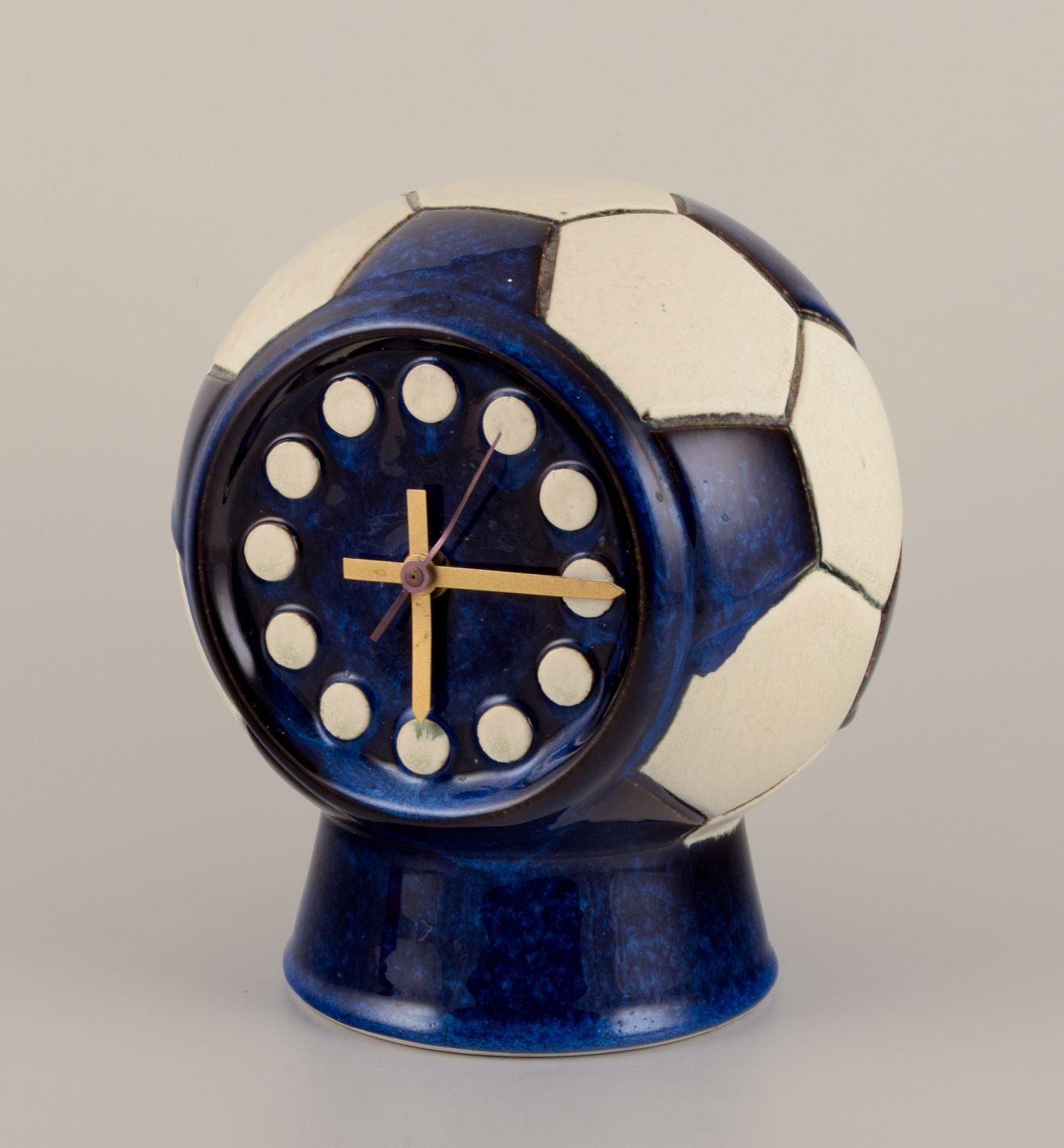 Berit Sundell for Gustavsberg, Sverige. Unika keramik bord-ur udformet som fodbold. Visere i messing.