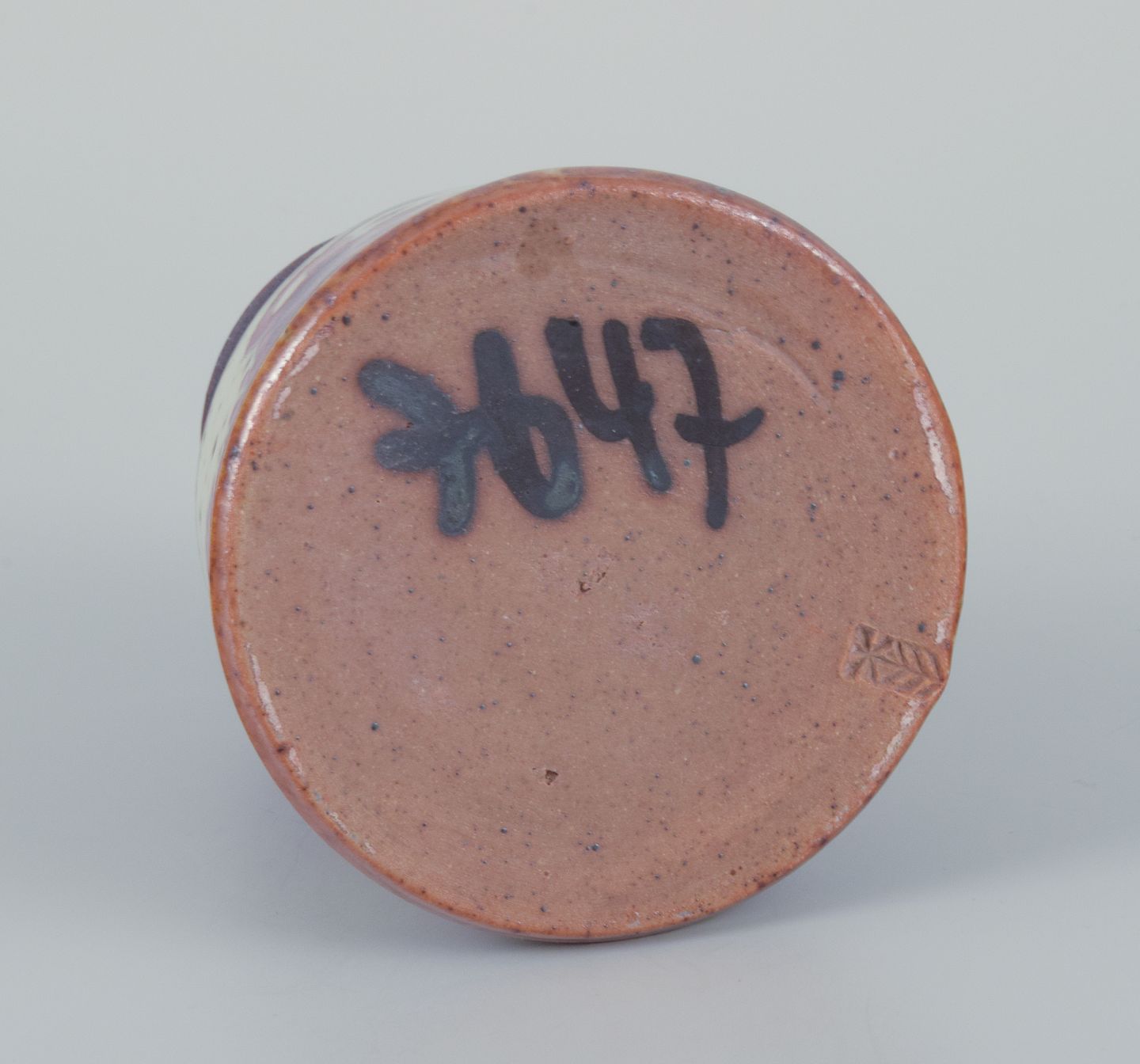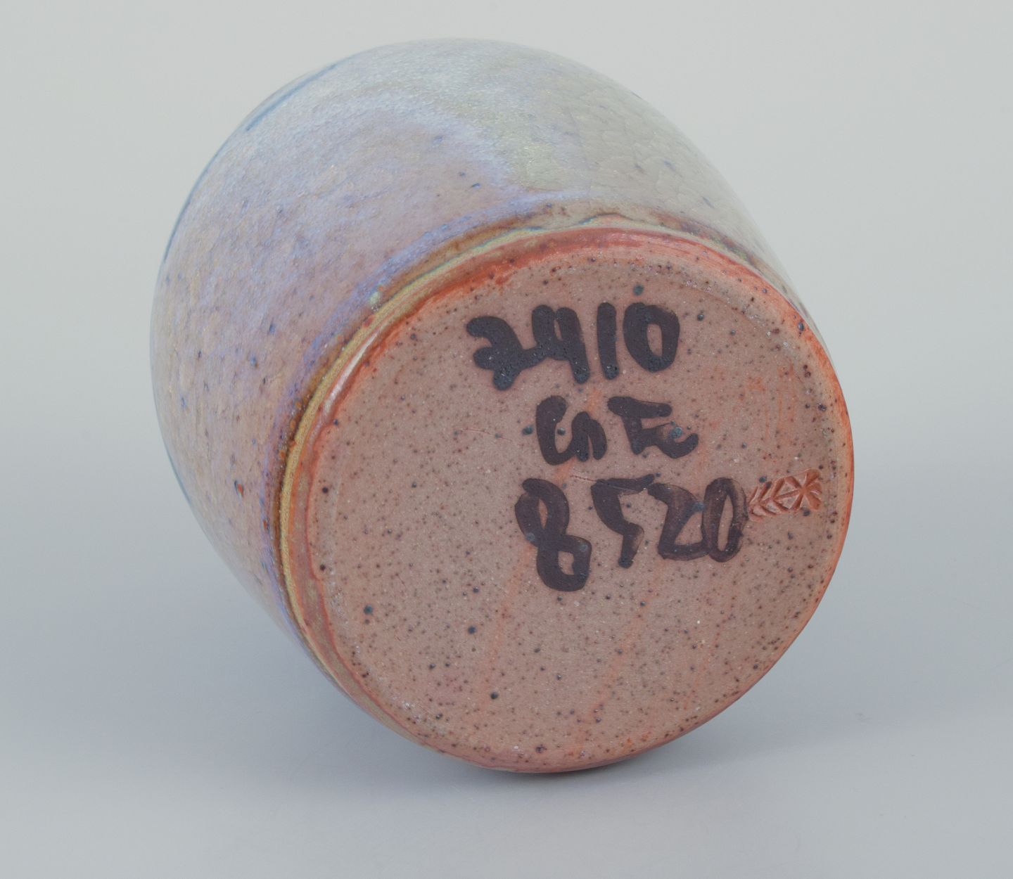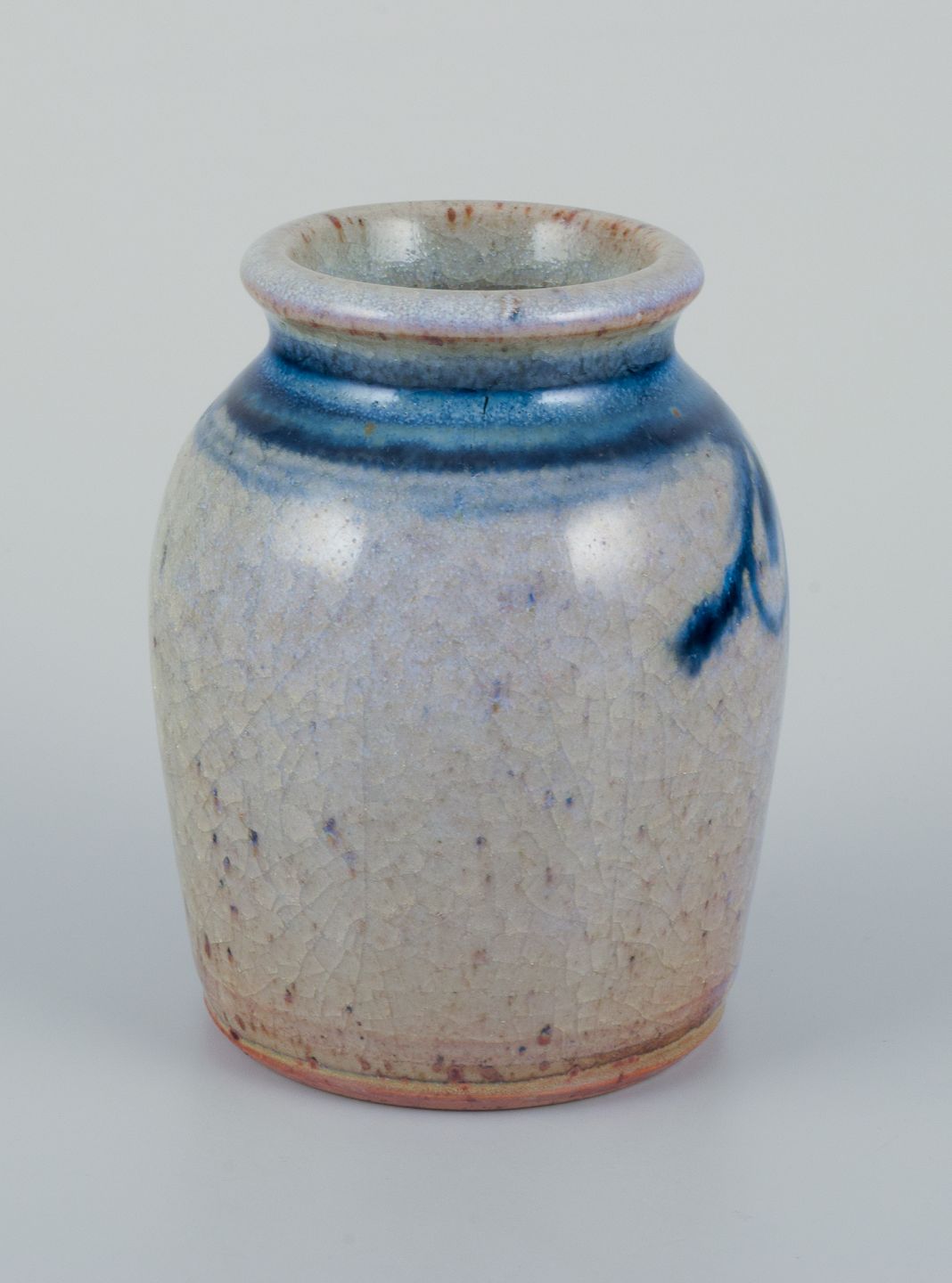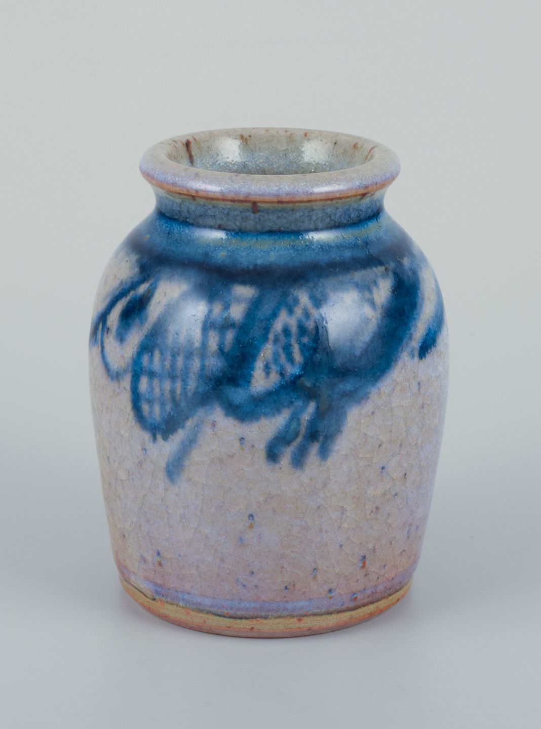 Den ene vase med glansfuld glasur i blålige og violette toner.