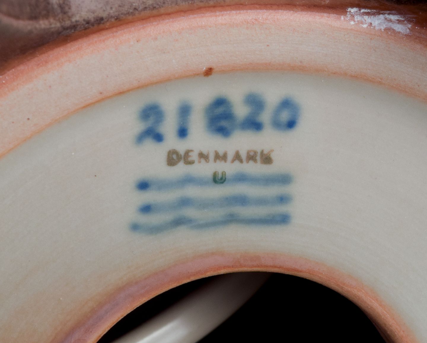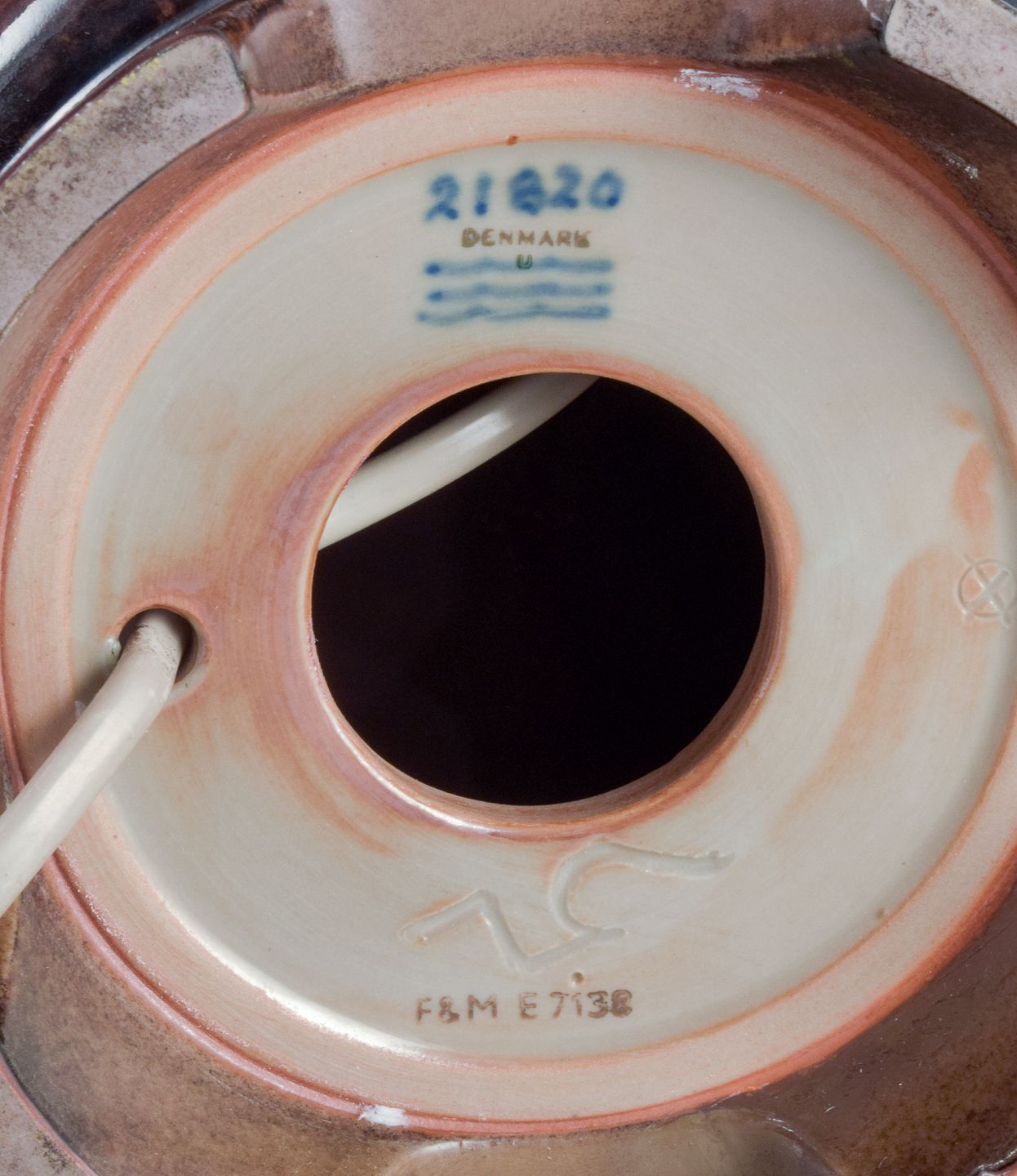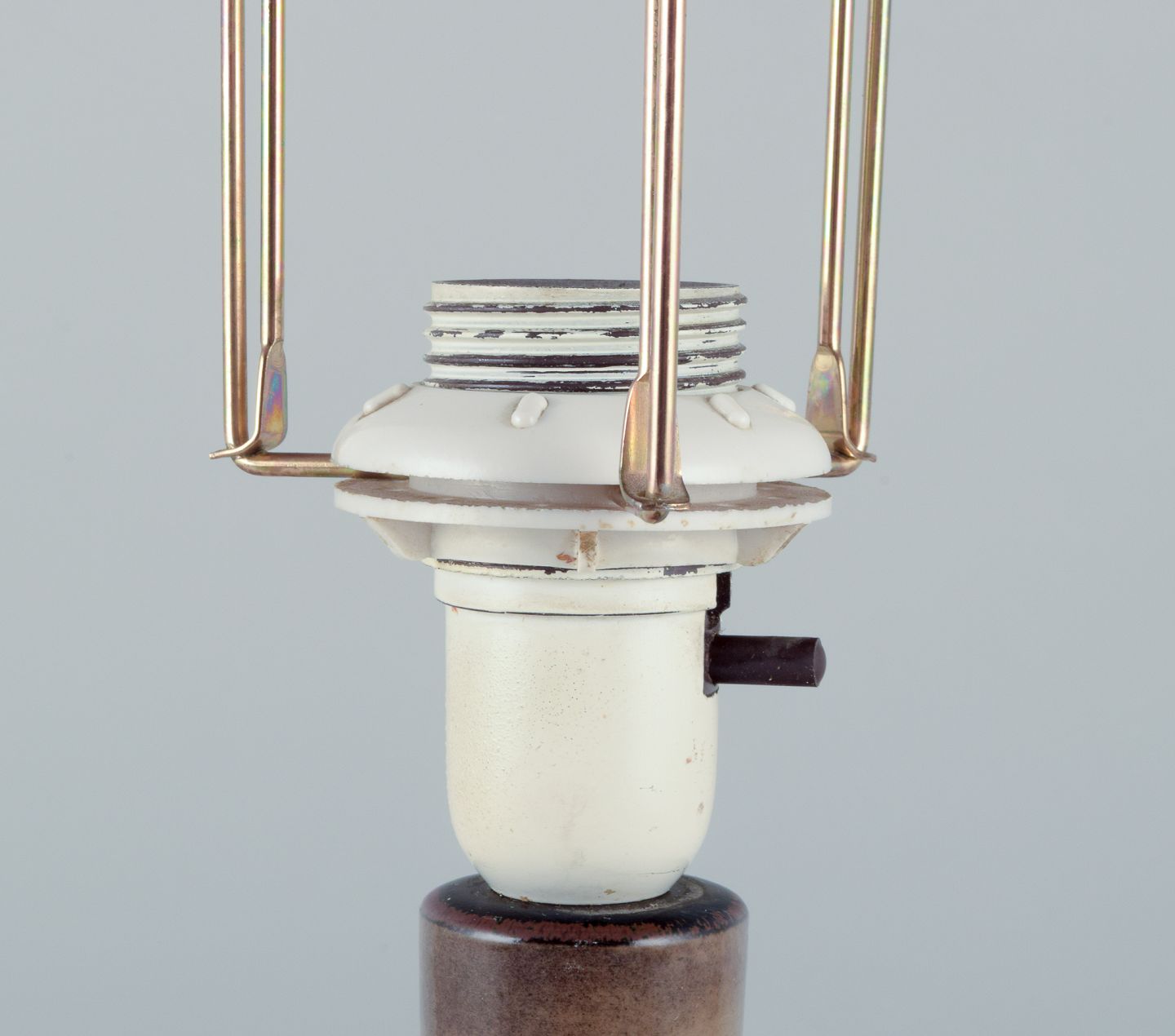 Nils Thorsson for Royal Copenhagen. Bordlampe i stentøj med motiv af svømmende fisk. Glasur i brune toner.