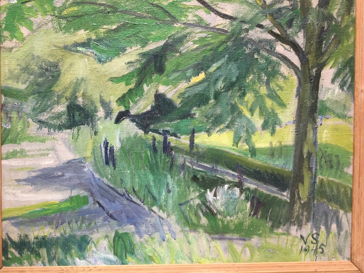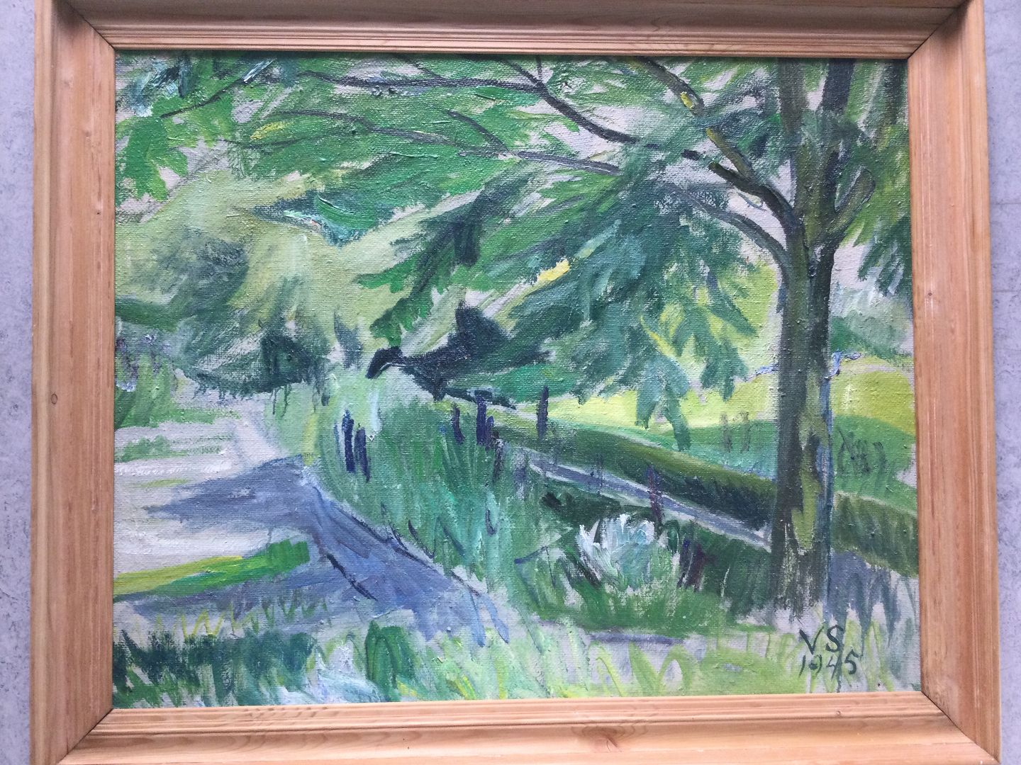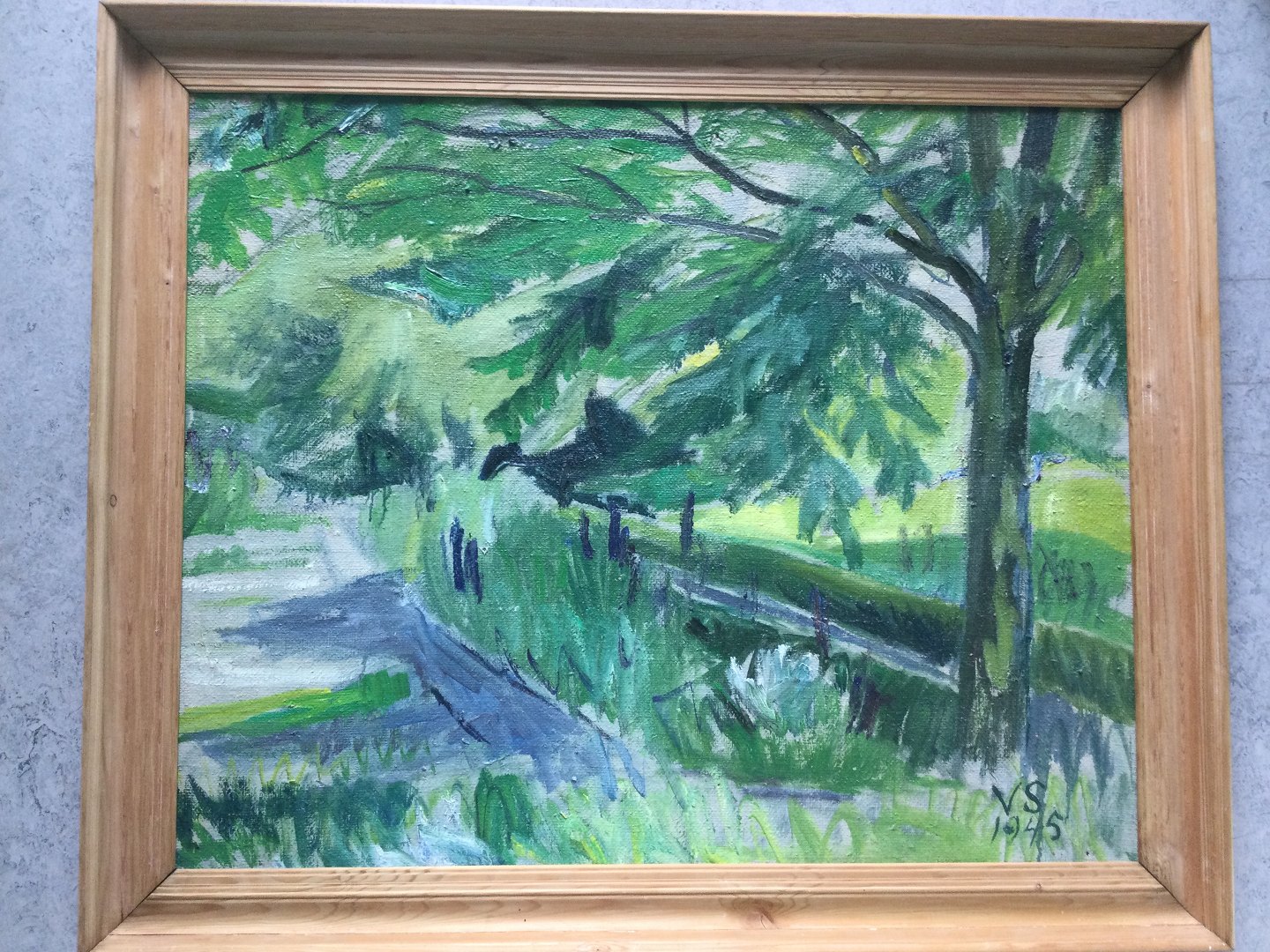 Maleri af Valdemar Secher 1945 - Grønt landskab.