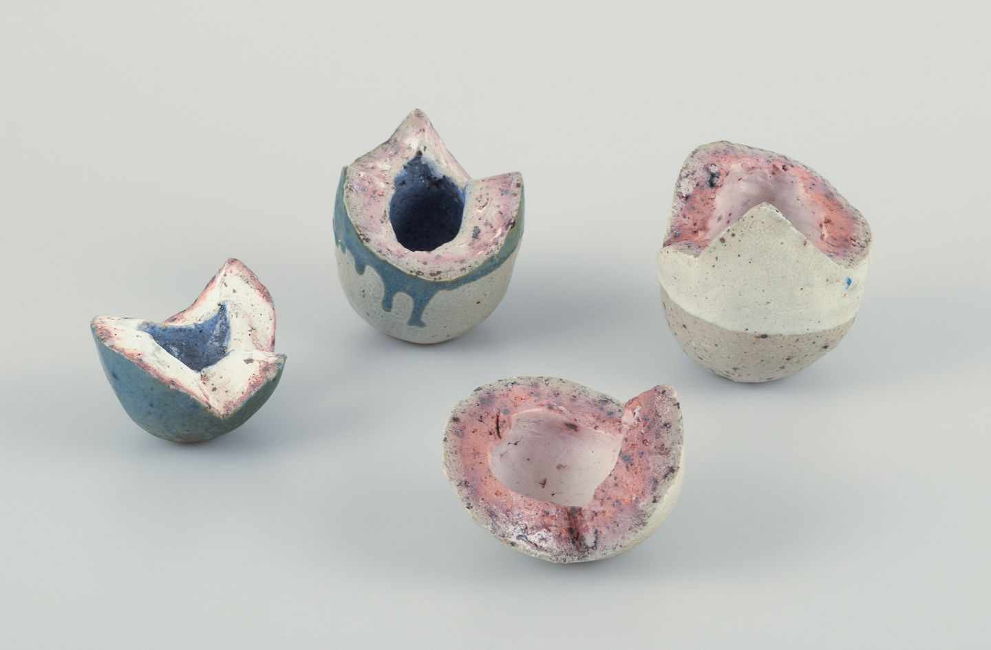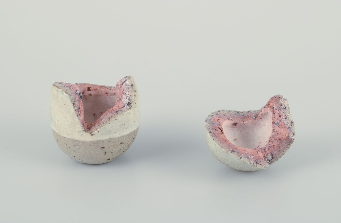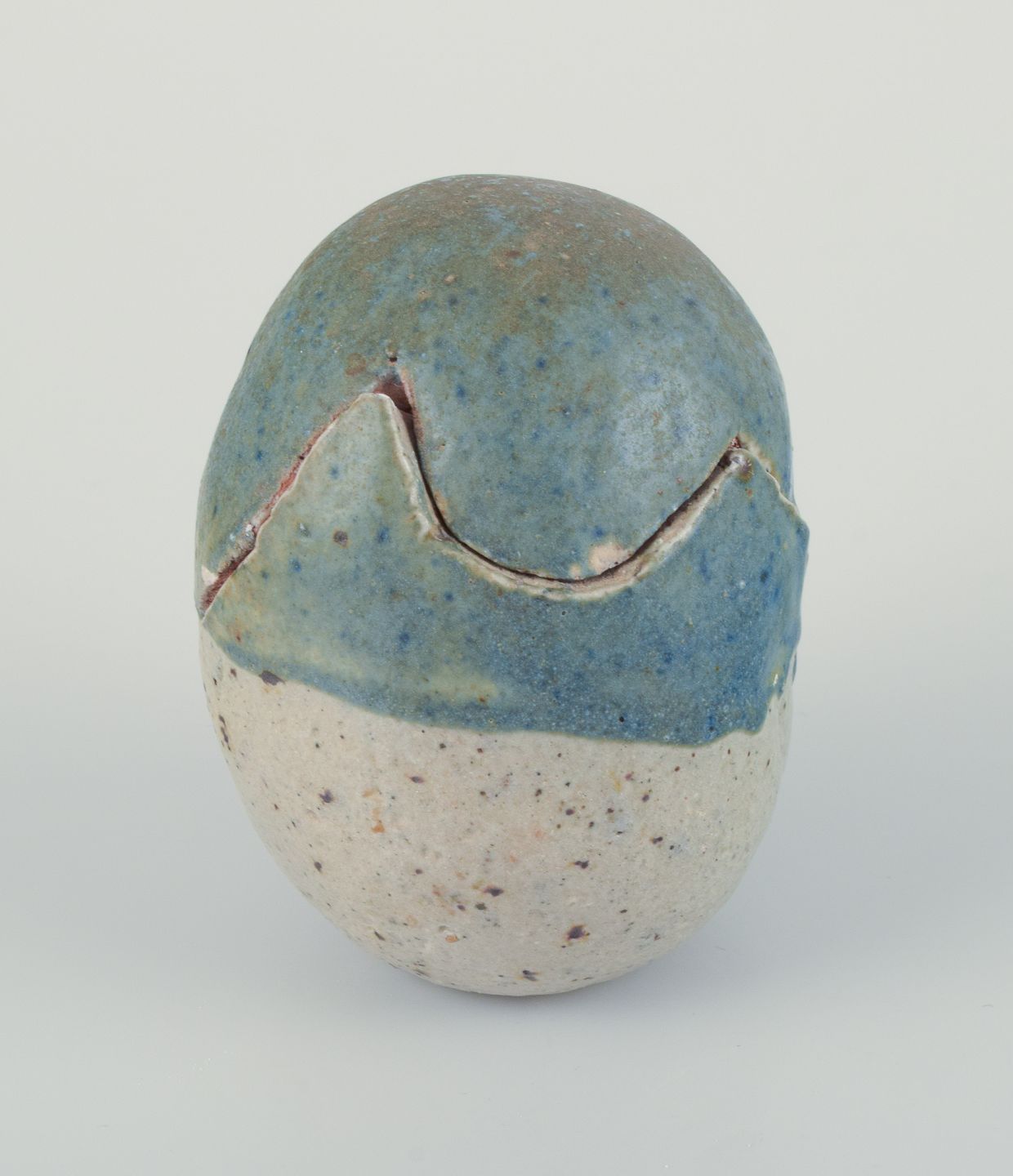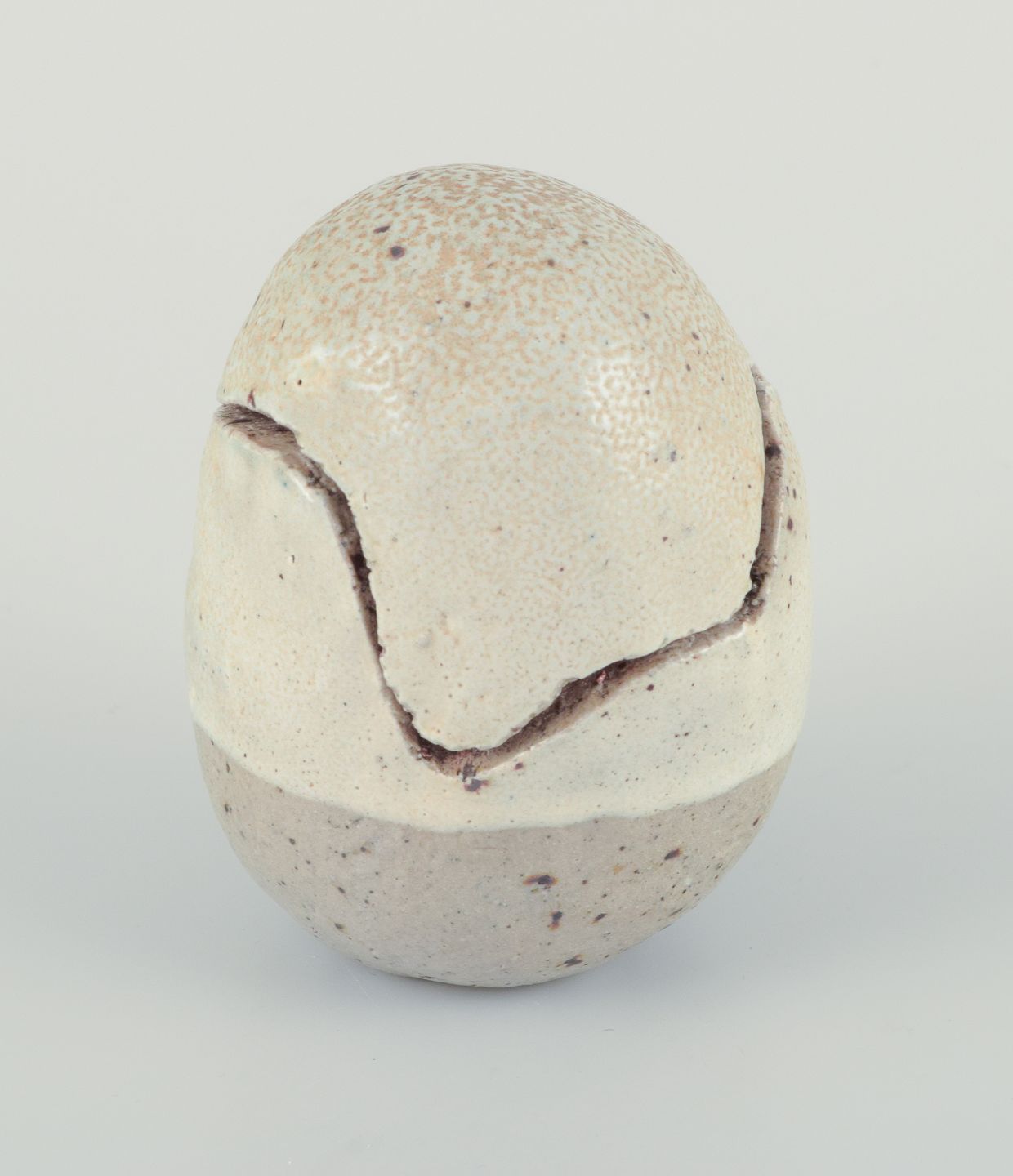 Dansk studio keramiker, to æggeformede unika-skulpturer i keramik. Todelt.