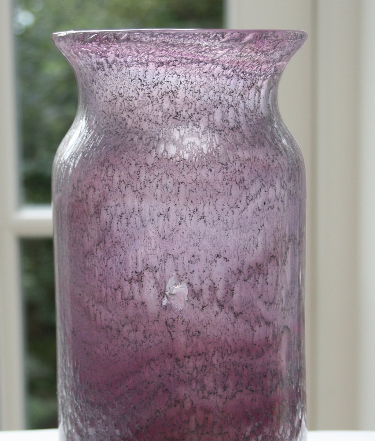 Kastrup-Holmegaard, Troldglasserien, Vase i rosa/lavendel. Designet af Sidse Werner 1975. Højde 21,5 cm. Øverste diameter 11 cm. Usigneret. Produktionsfejl indvendig, som en bristet luftboble. Pris: 350 kr.