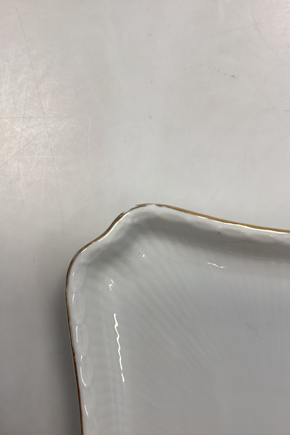 Royal Copenhagen Tradition Halvblonde m. Guld Aflang Bakke No. 716. Måler 24 cm x 17 cm (9.45 in. x 6.7 in.) Let slid på guldkant.