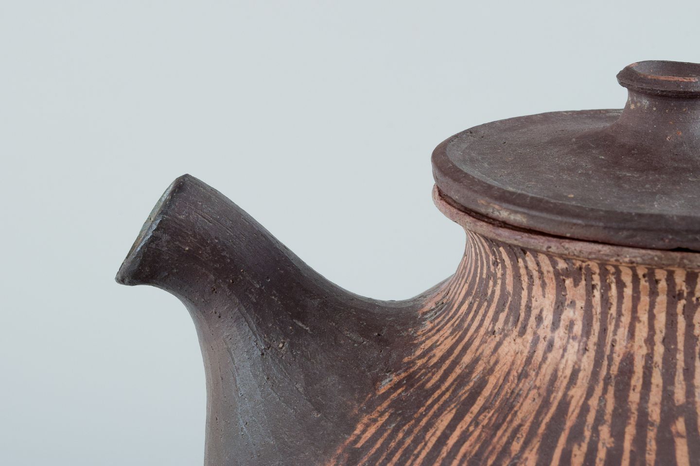 Unique ceramic teapot. Raku-fired. Glaze in brown and yellow tones.