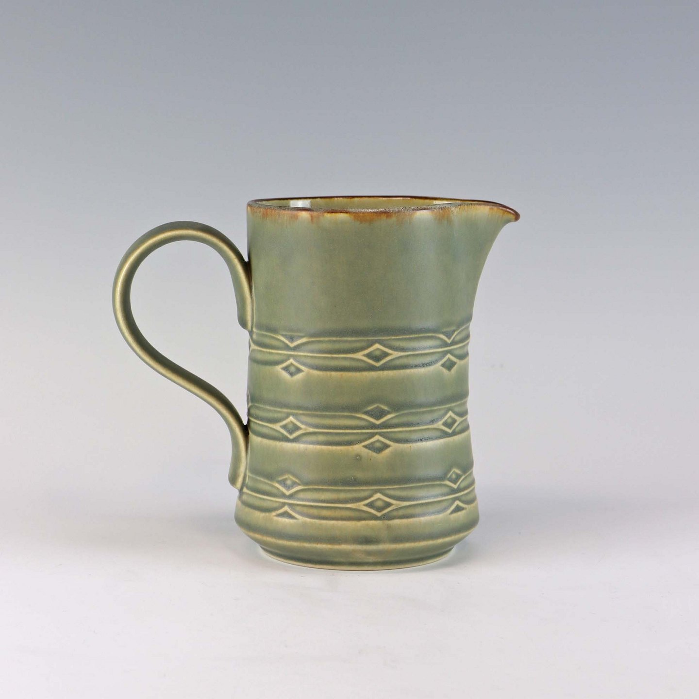 Stellet Rune er glaseret i grønne og råhvide farver med en brun kant.