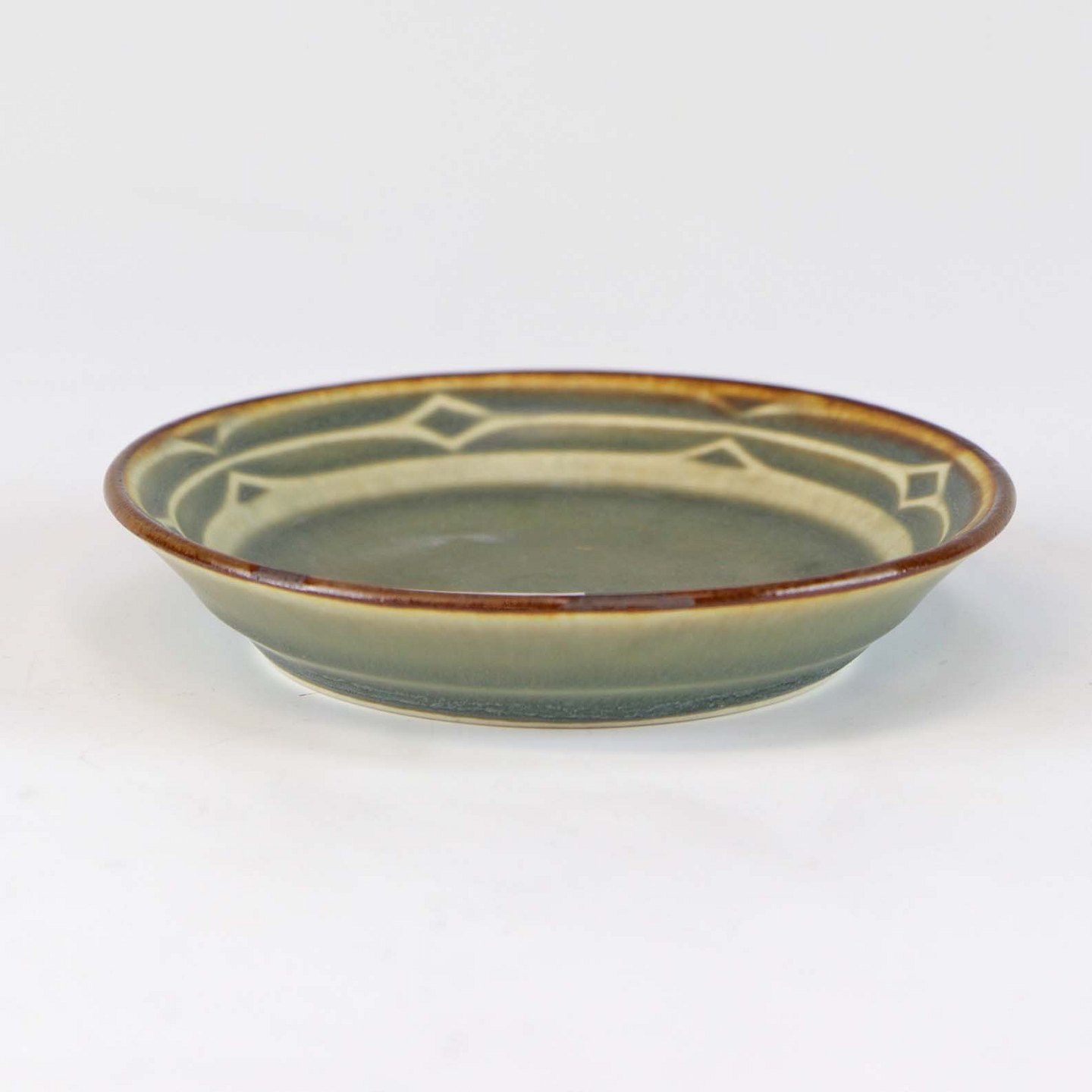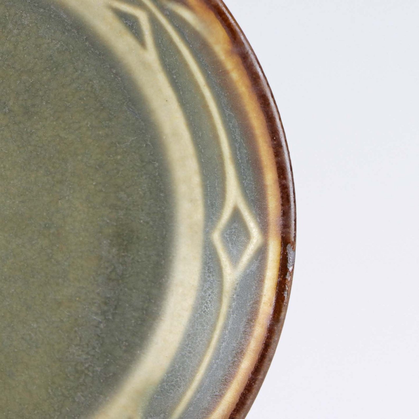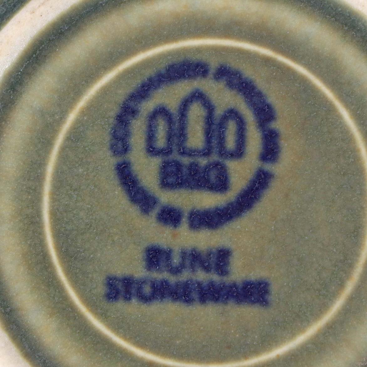 Stellet Rune er glaseret i grønne og råhvide farver med en brun kant.