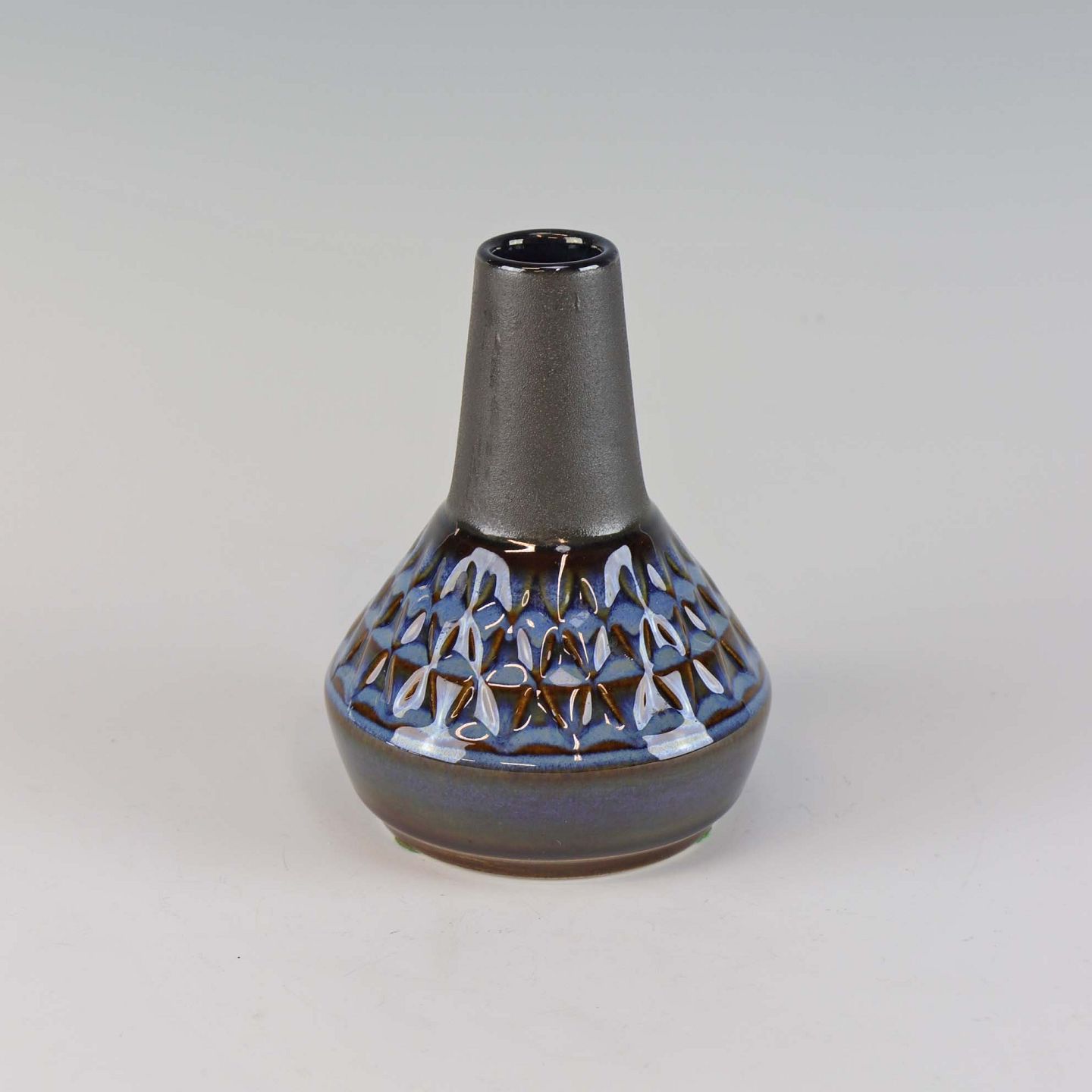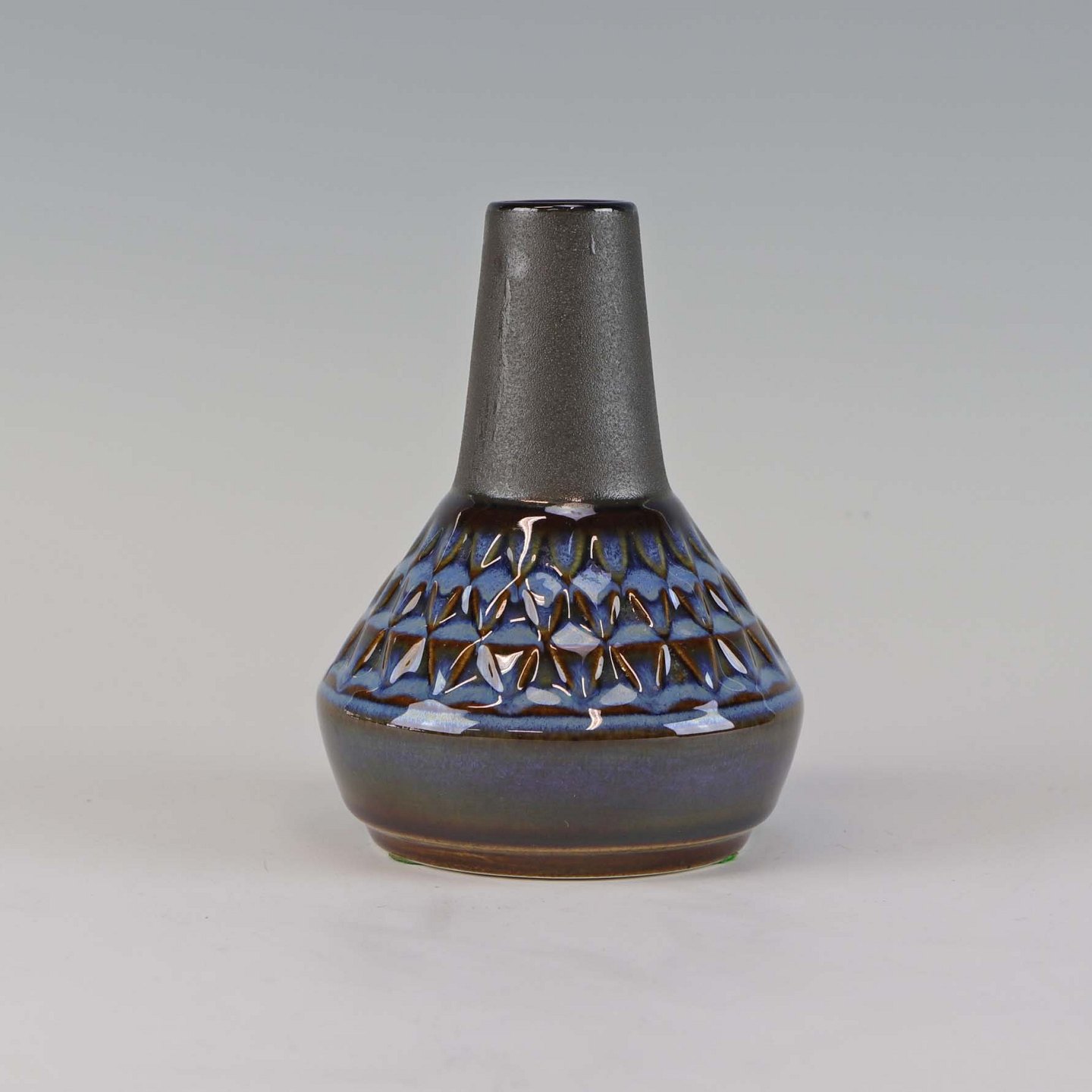 Vase af stentøj, glaseret i grå og blå farver