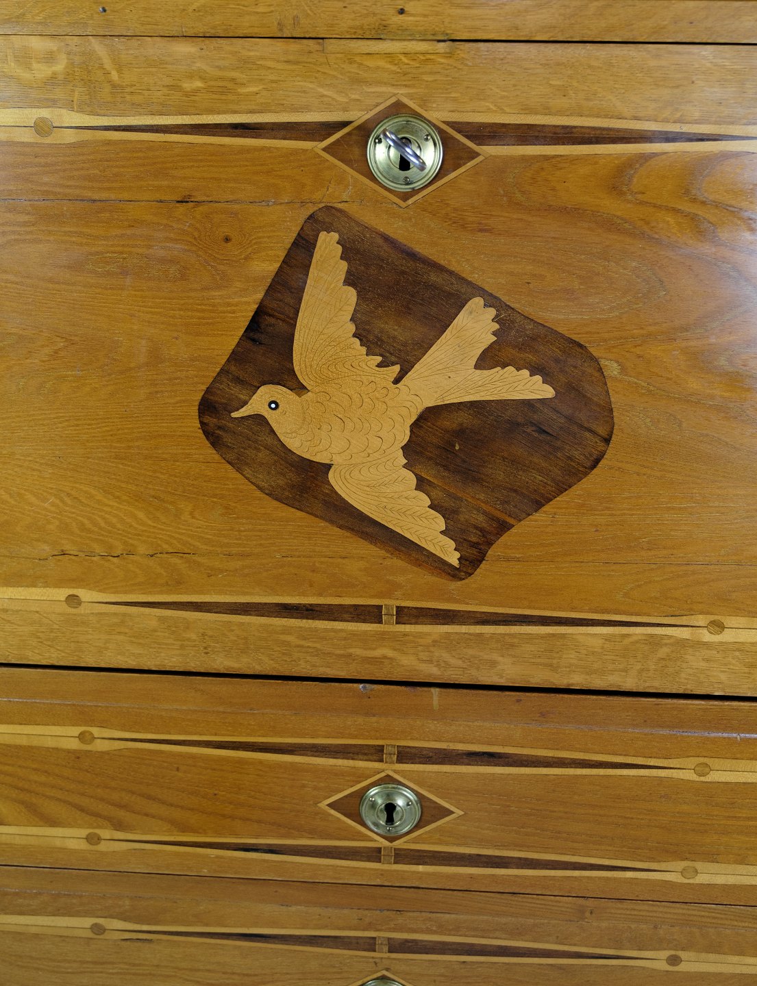 Sekretær - Elmetræ - Intarsia af Frugt træ - Messing Håndtag - 1810