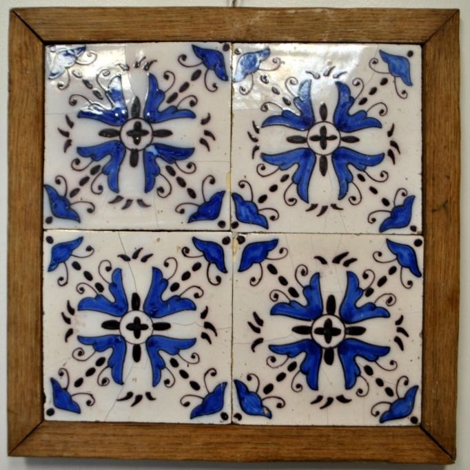 Firpas med antikke fliser, 19. årh. Holland. Polykrome. 26 x 26 cm.