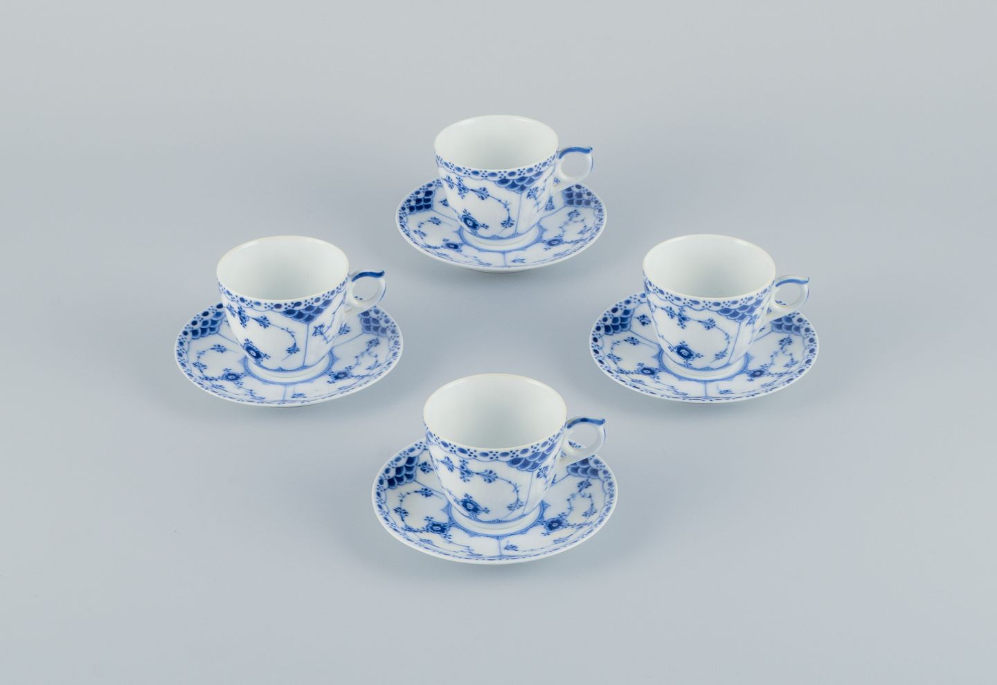 Royal Copenhagen Musselmalet Halvblonde. Et sæt på fire kaffekopper med tilhørende underkopper.