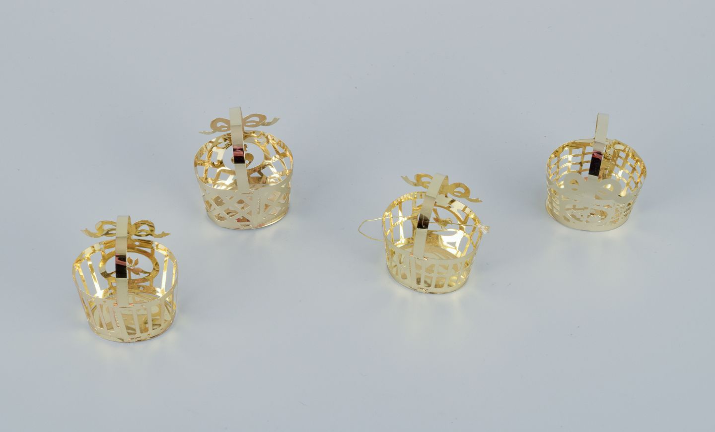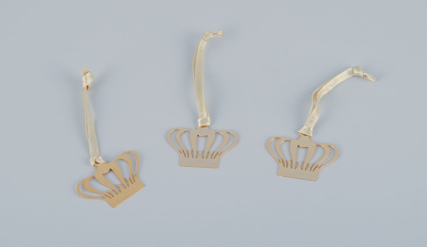 Royal Copenhagen ”Royal Christmas”. Ti juledekorationer i messing til ophæng på juletræ og i vinduet.