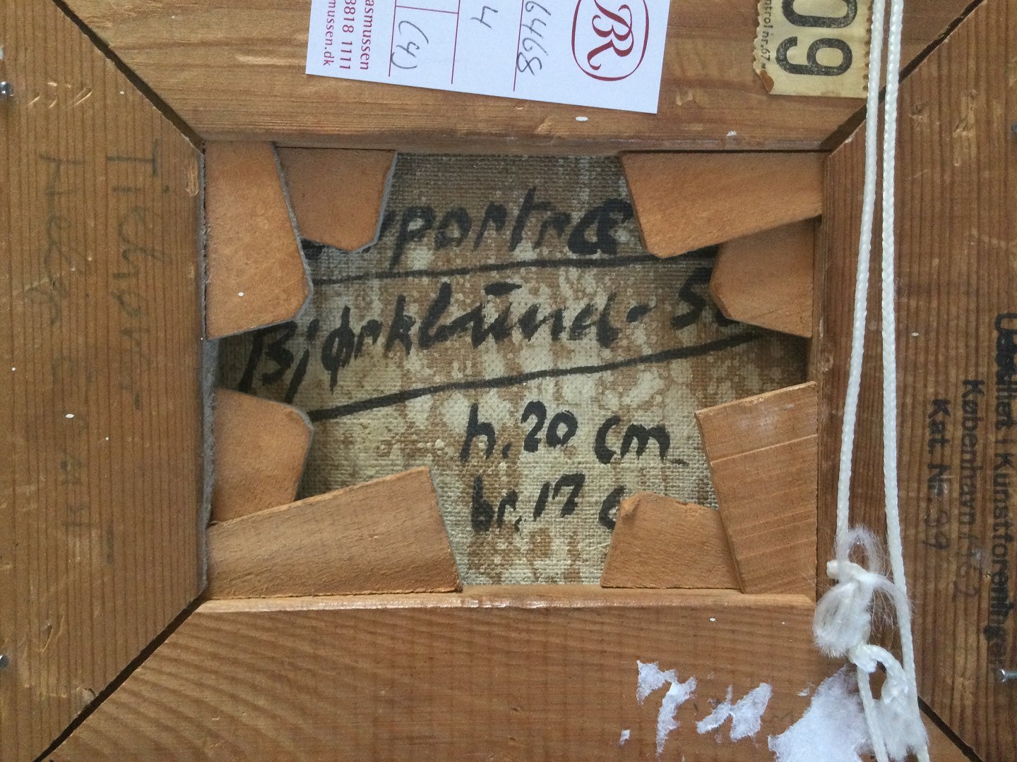 Bagpå flere udstillingsmærkater bl.a. Kunstforeningen København.