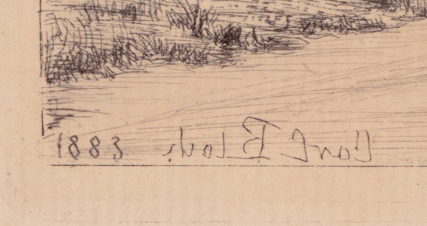Carl Bloch (1834–1890). Radering. Huse ved vej.
