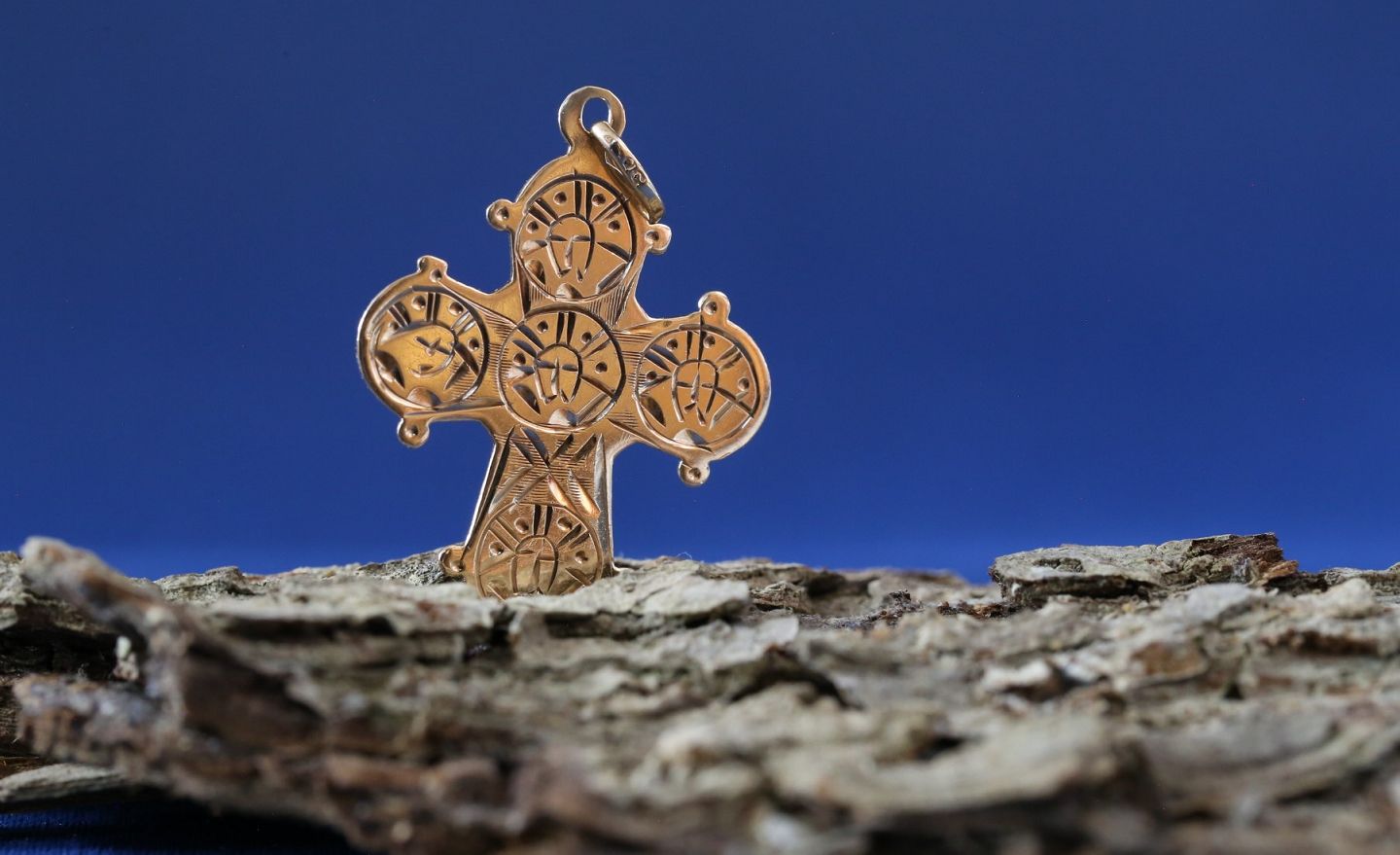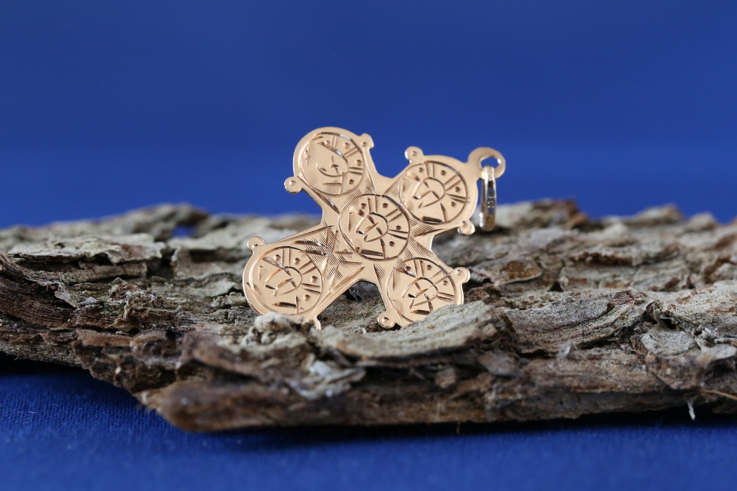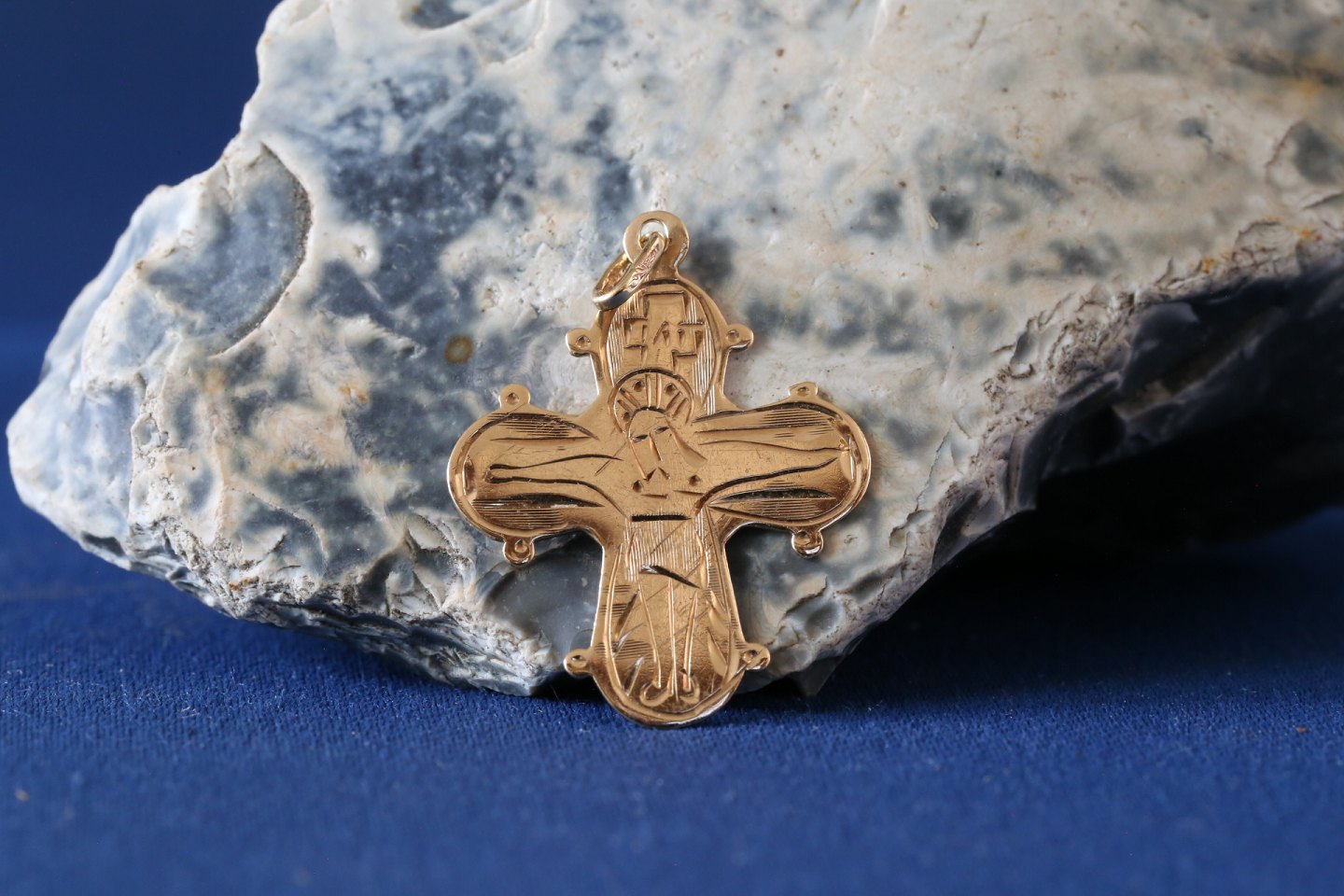 Flot klassisk Dagmarkors i 14 karat guld, med flotte detaljer. Korset har smukke tegninger af Kristus på den ene side, og smukke ornamenteringer på den anden. Korset er særdeles velegnet som konfirmationsgave, og kan bæres smukt i en tynd guldkæde.