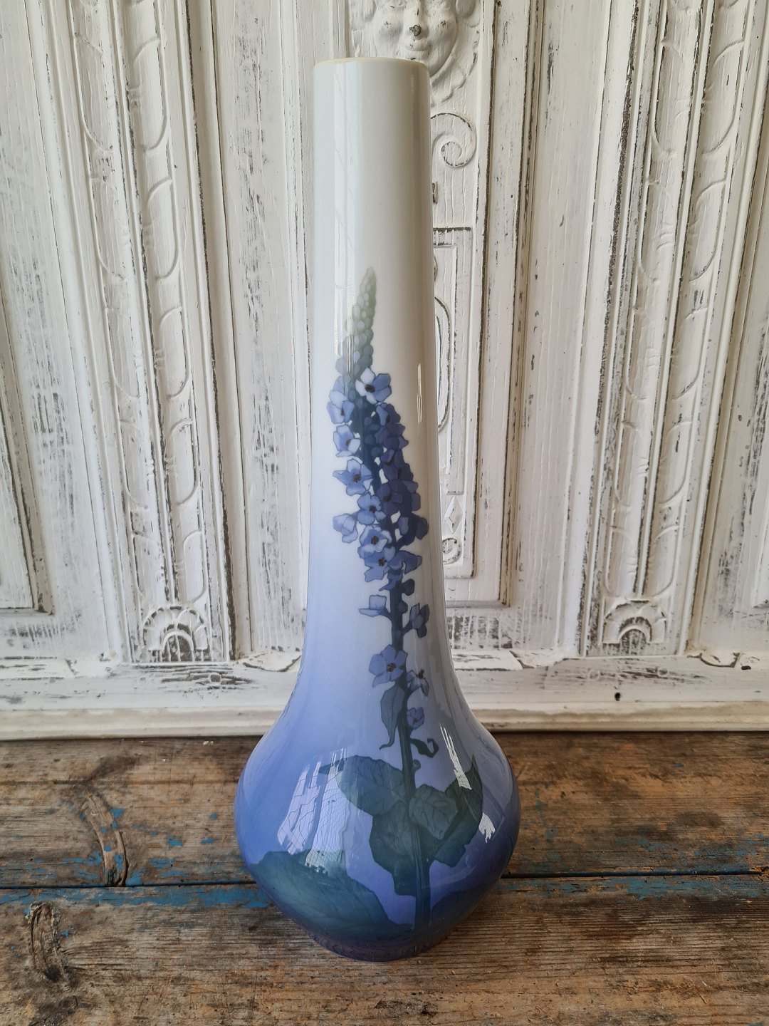 Royal Copenhagen unika Art Nouveau vase dekoreret med blå blomster 44 cm.