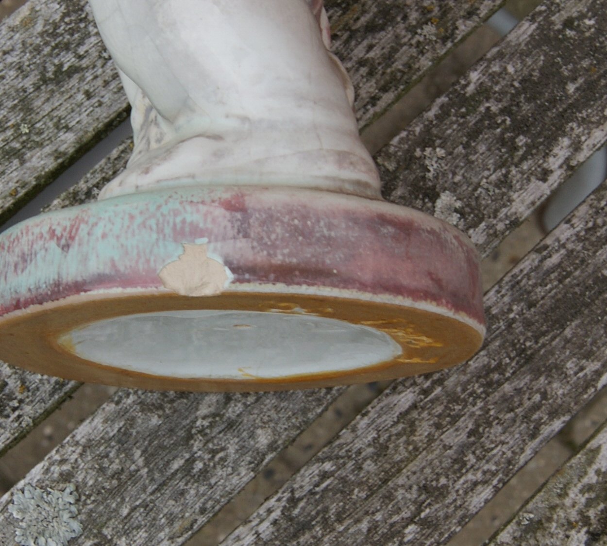 Michael Andersen keramik, Bornholm. Nøgen dreng med trompet, samt med skår på den lave sokkel