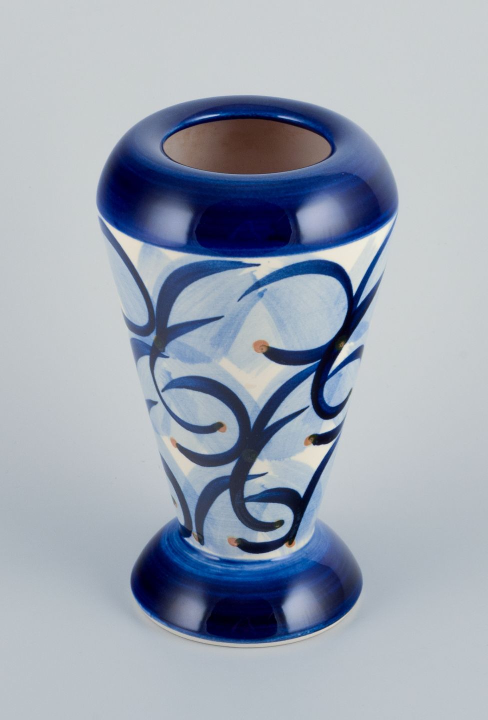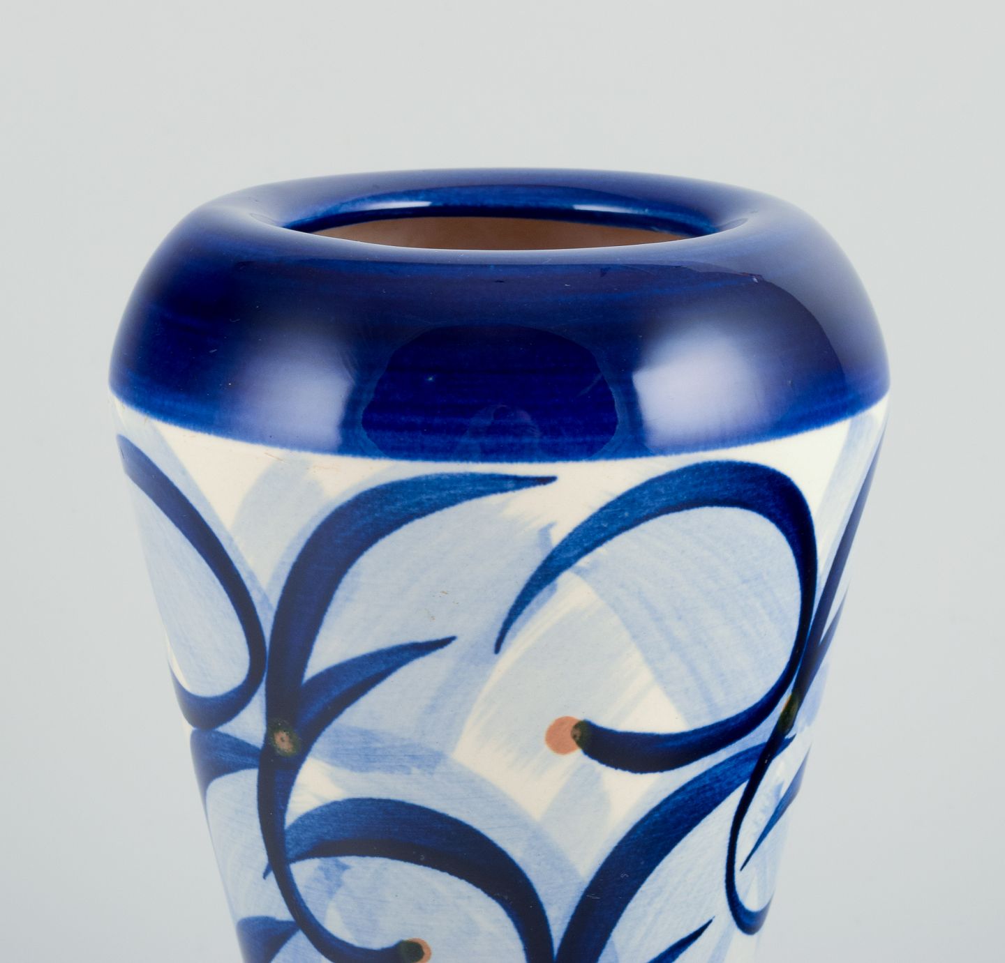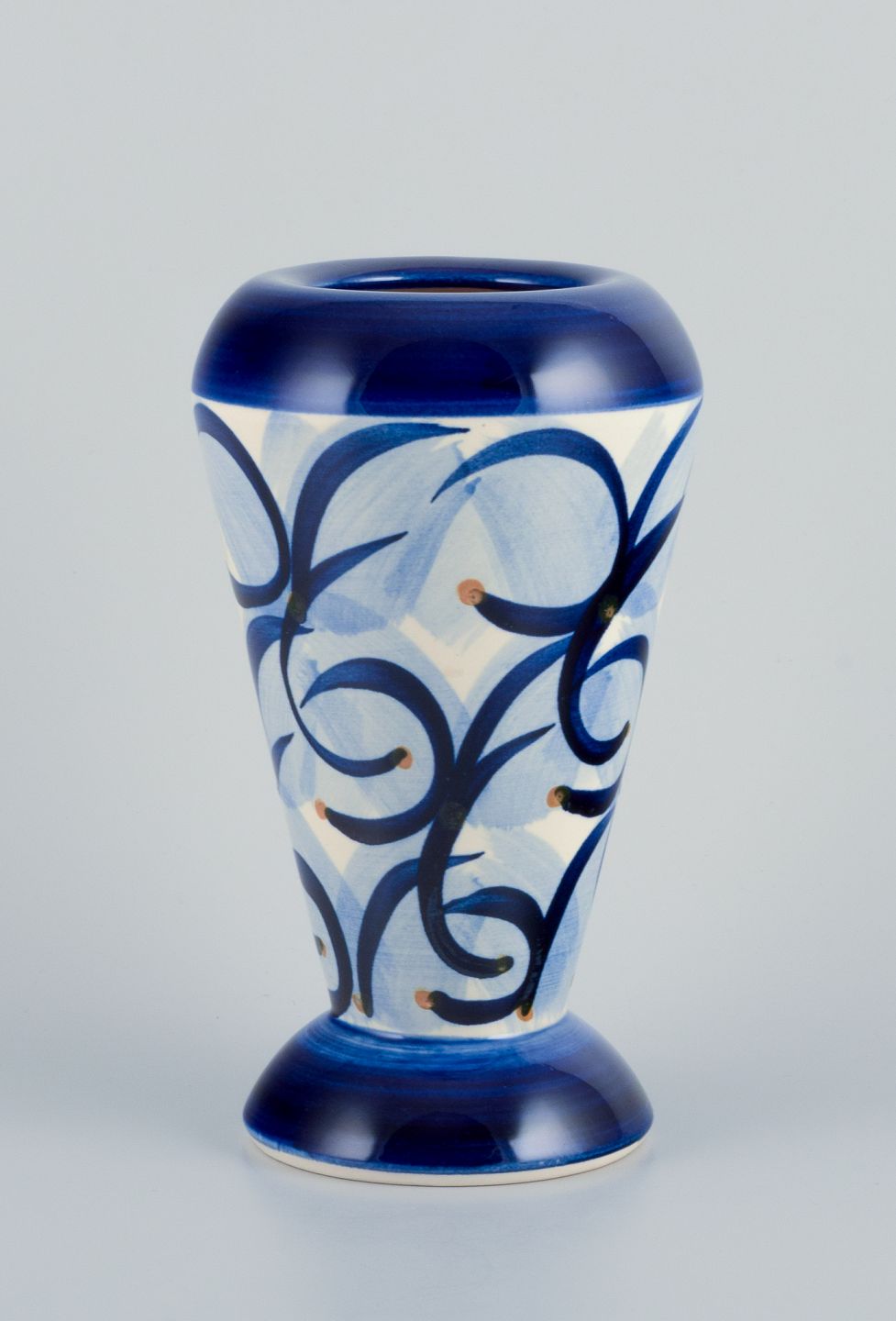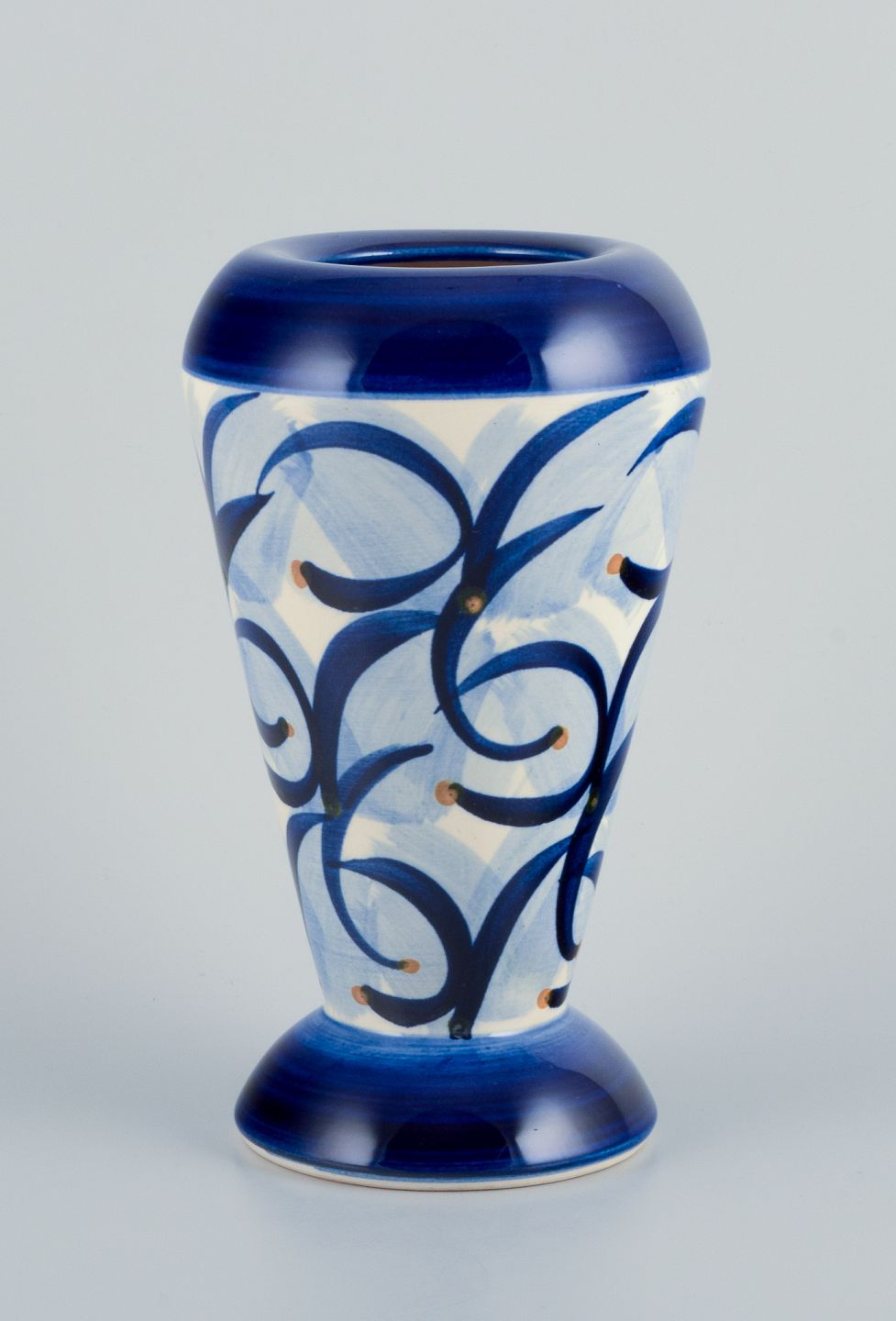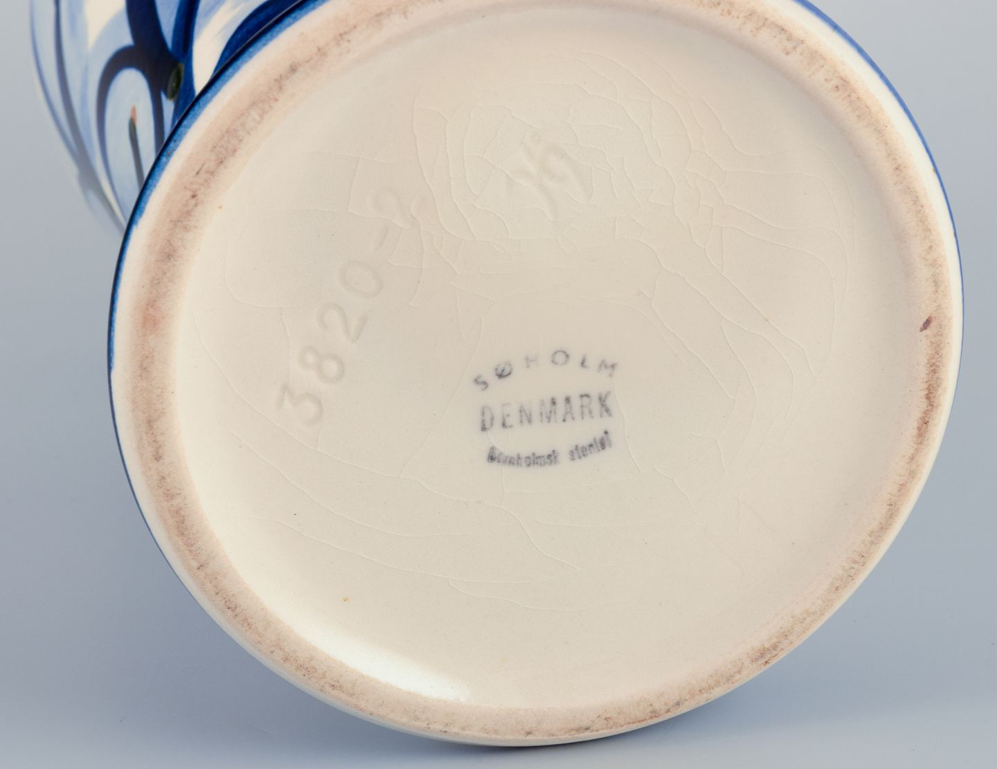 Søholm, Bornholm. Keramikvase. Abstrakt motiv. Glasur i blå nuancer.