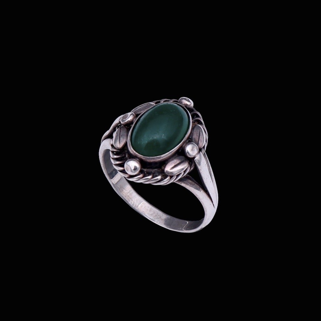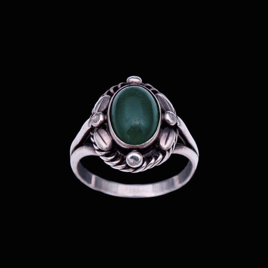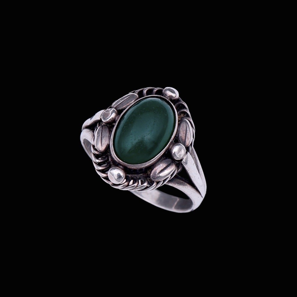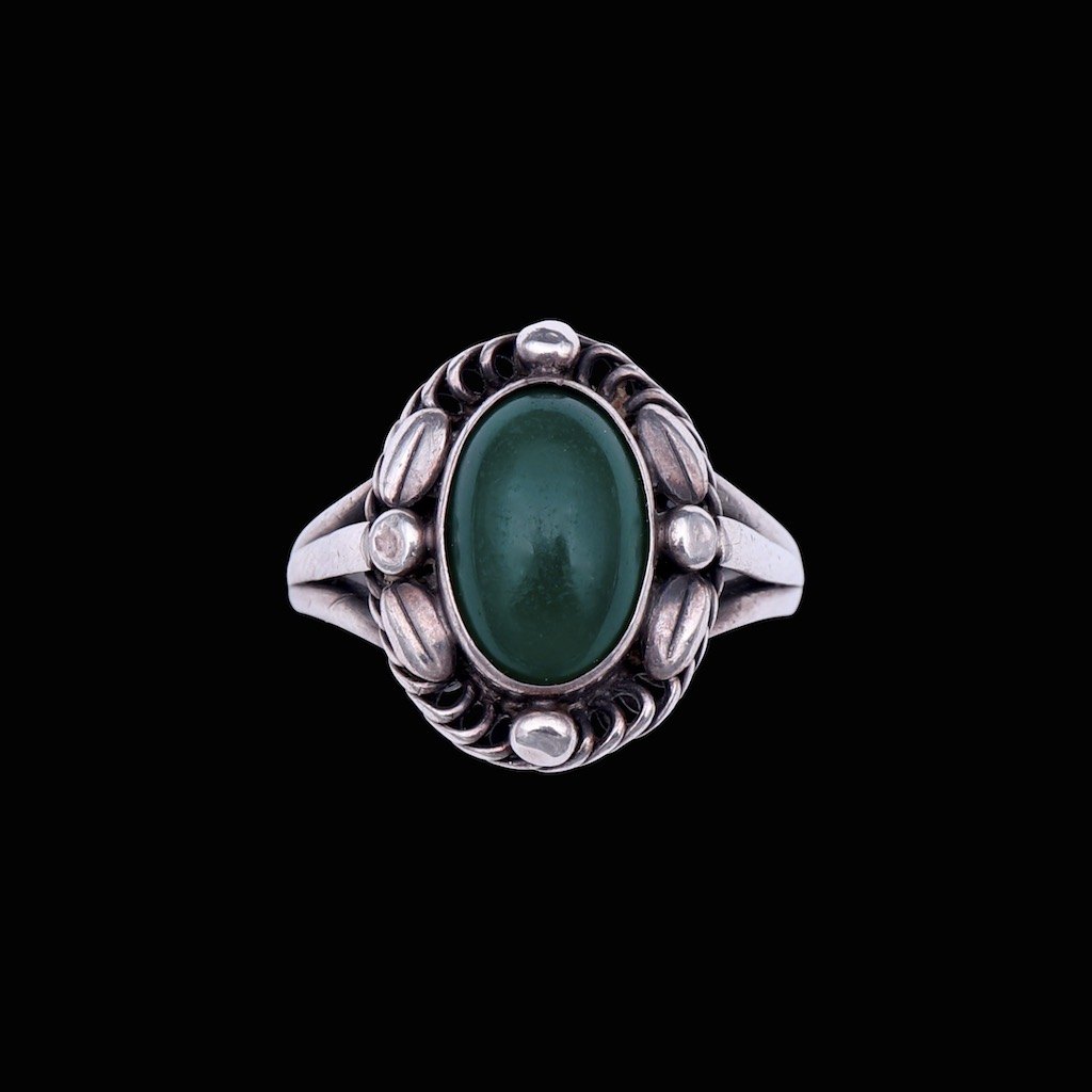 Georg Jensen. Ring i sterling sølv med grøn agat #1.