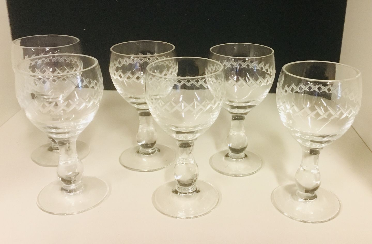 Kroglas, Ballonglas med krydsslibning. Sjældne portvinsglas, H 9,3 cm, D 4,5 cm, 6 stk.