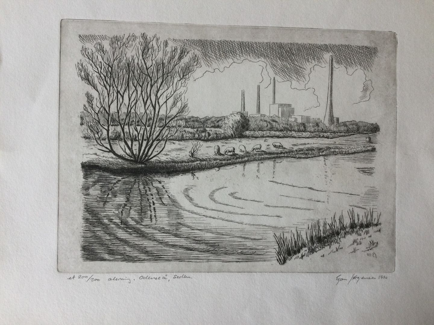 Ætsning af Egon Jørgensen 1990 - Fynsværket ved Odense å.
