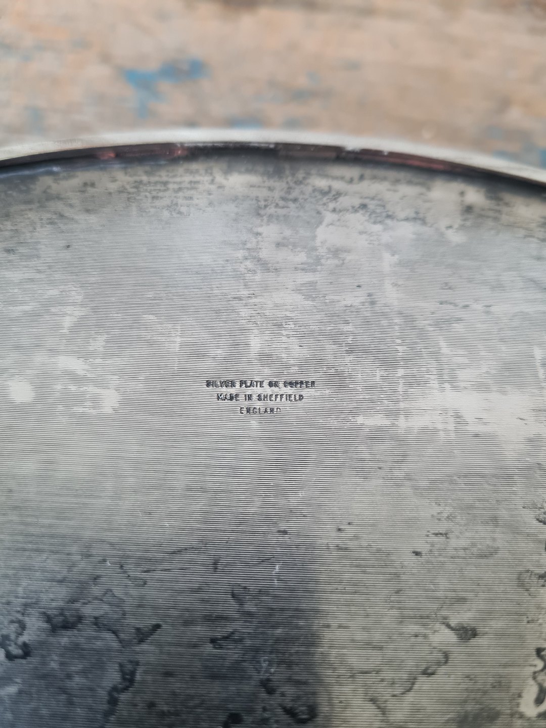 Text zugänglich auf Dänische: Smuk forsølvet engelsk bakke med gallerikant