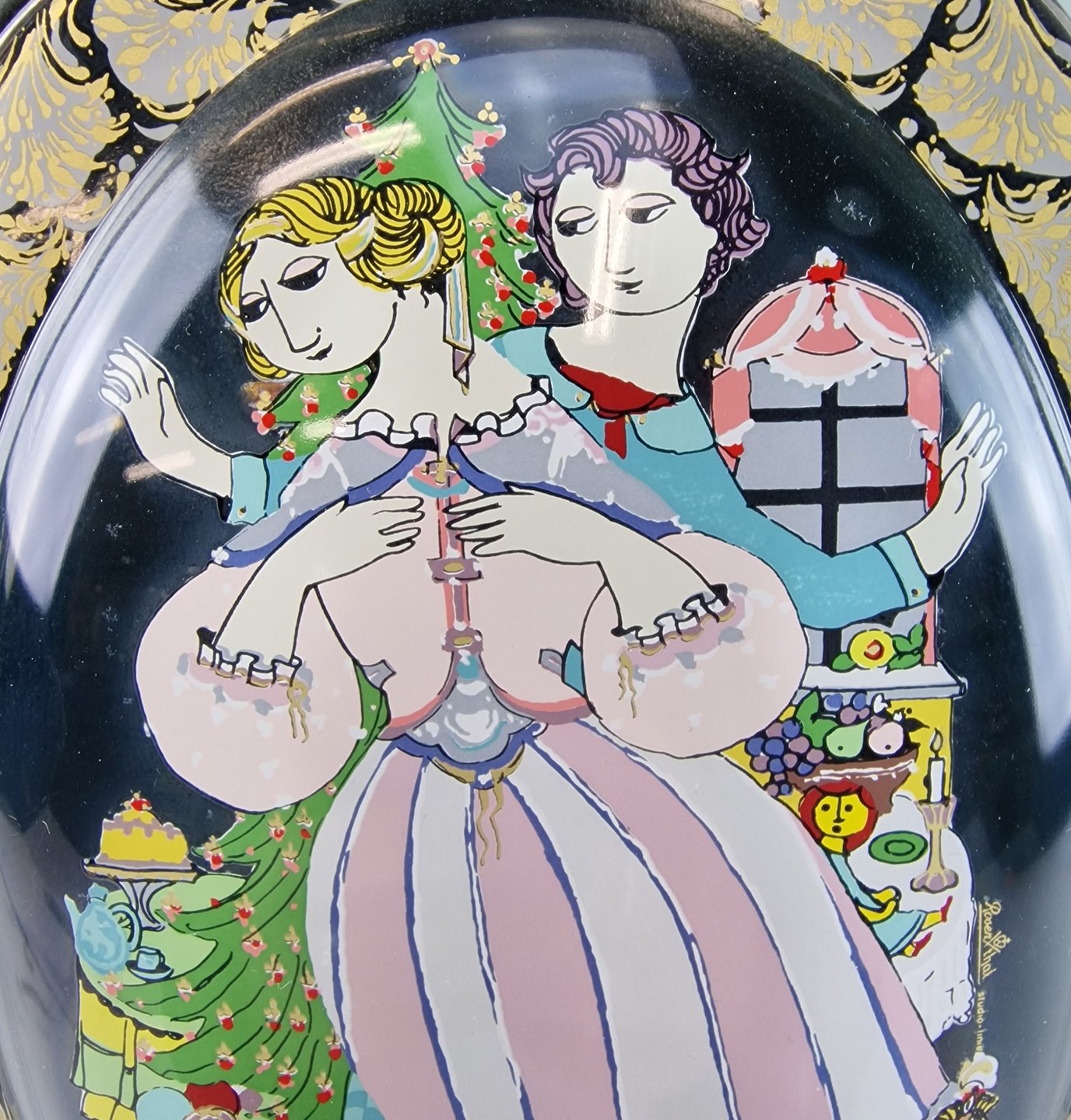 Sjælden glasplatte-serie lagt i farver under beskyttende metalbaggrund. Forestiller eventyret "Nøddeknækkeren" hvor Fritz forsøger at få Claras nøddeknækker