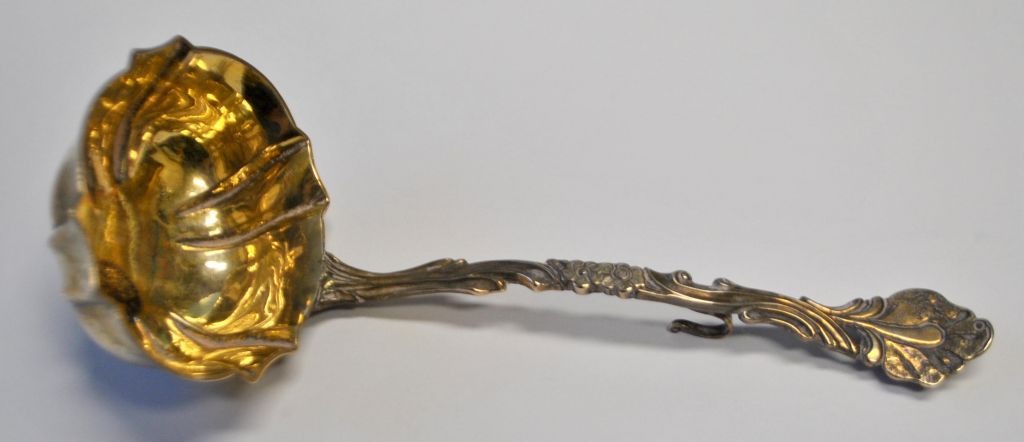 Sønderjysk silver baroque spoon, Philip Eckel Jansen (1722 - 1800) Sønderborg, Denmark. Stamped. Inside gilded. With engraving: Anna D. Petersen. L: 17.5 cm.