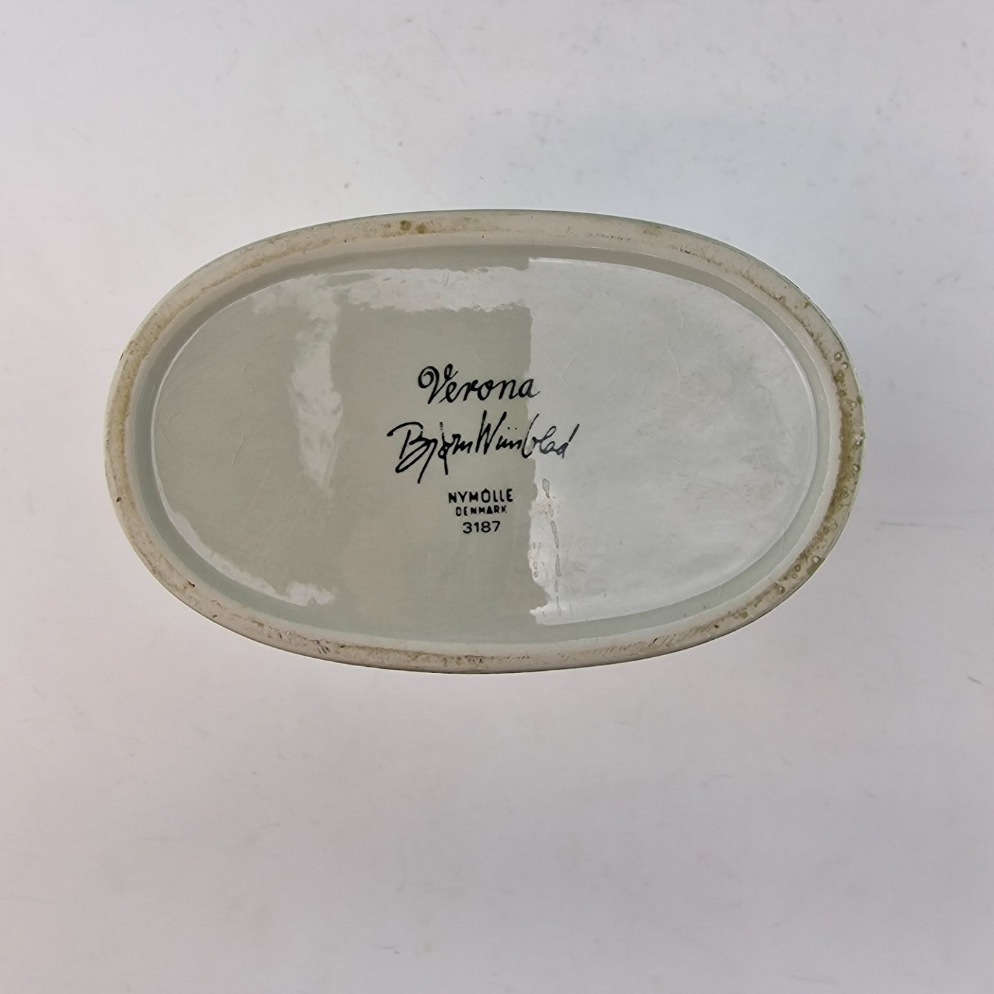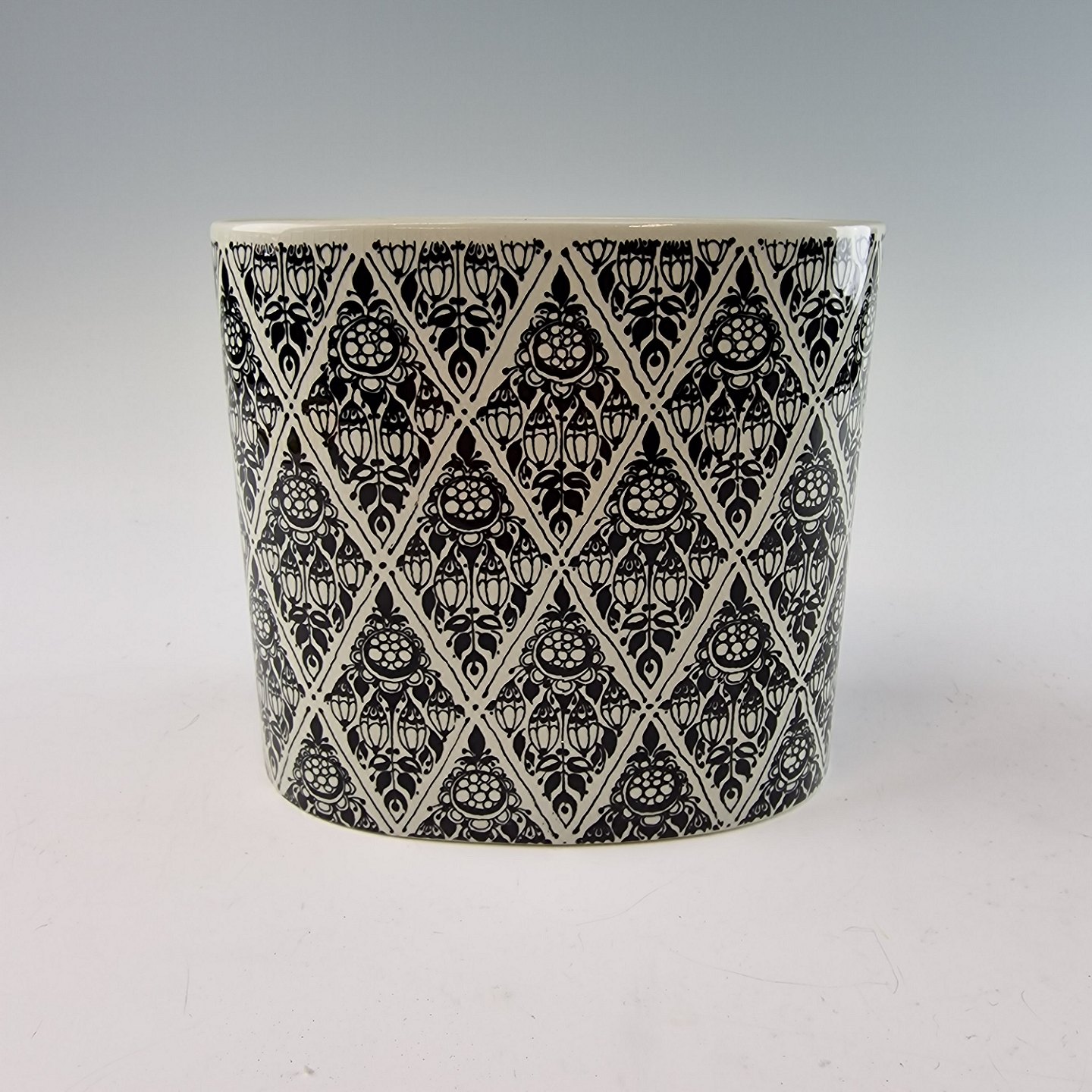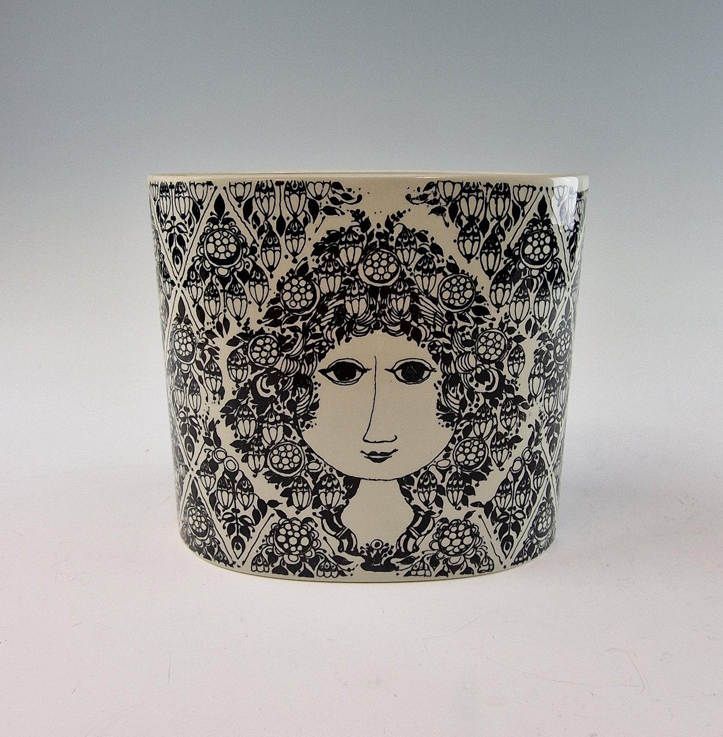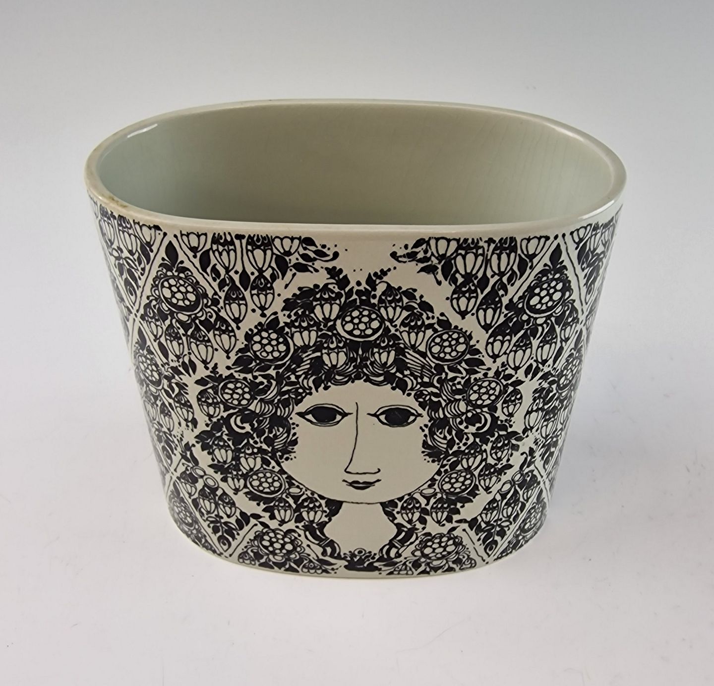 Oval vase af keramik med det klassiske sort/hvide mønster af et kvindeansigt og blomster. Verona No 3187