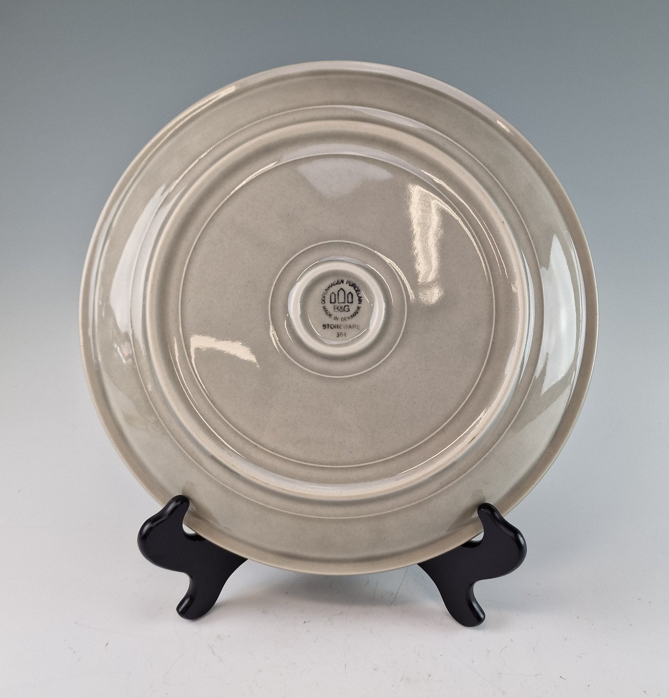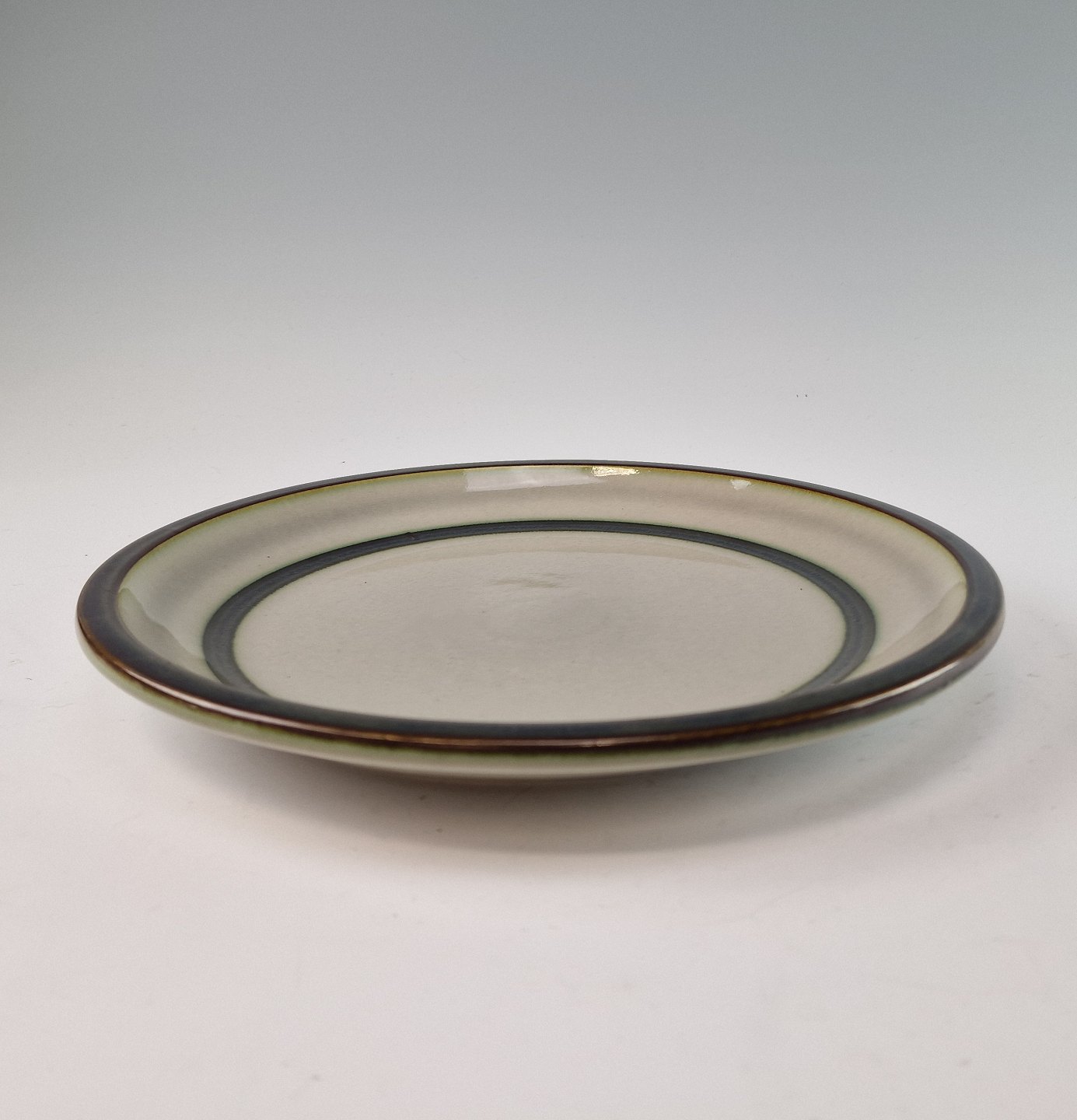 Stellet Tema er af stentøj, glaseret med lys grå og dekoreret med kanter af grønne og brune farver