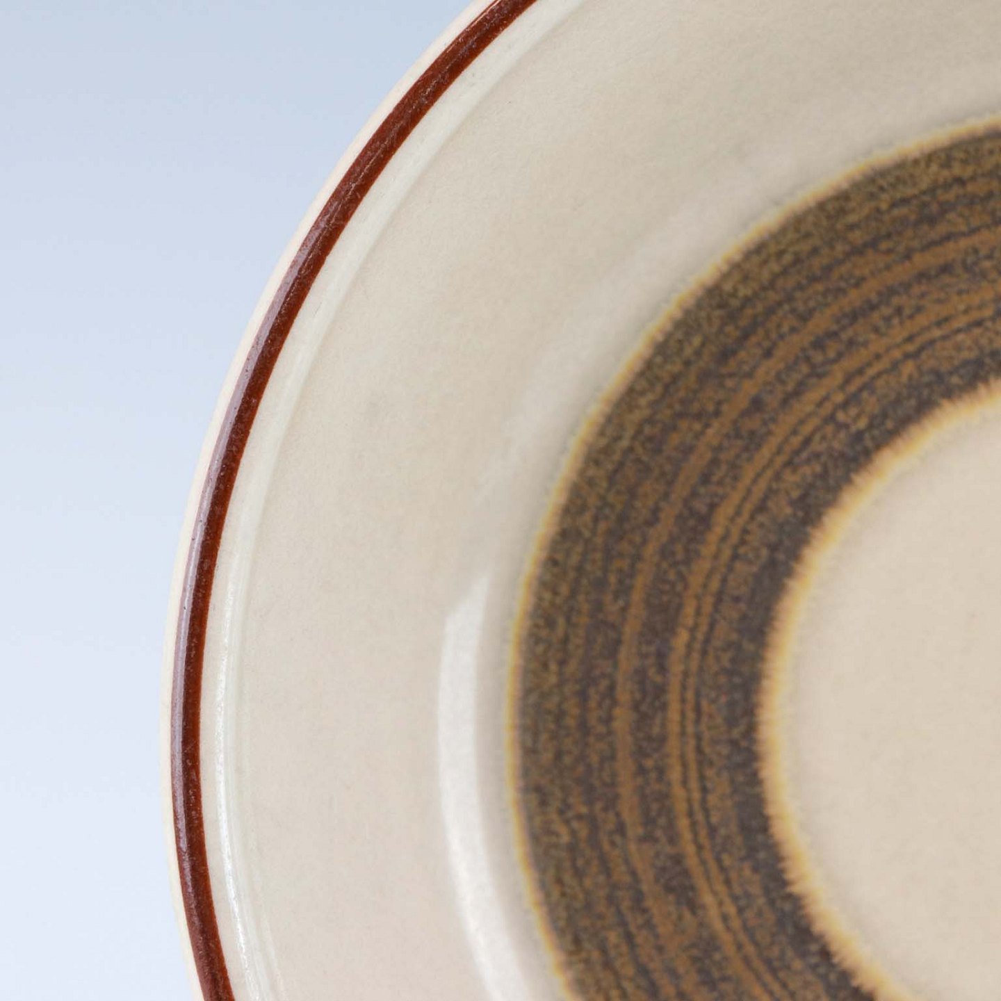 Stellet Peru er af stentøj, glaseret med lys grå farve og dekoreret med bånd af grøn/brunlige farve