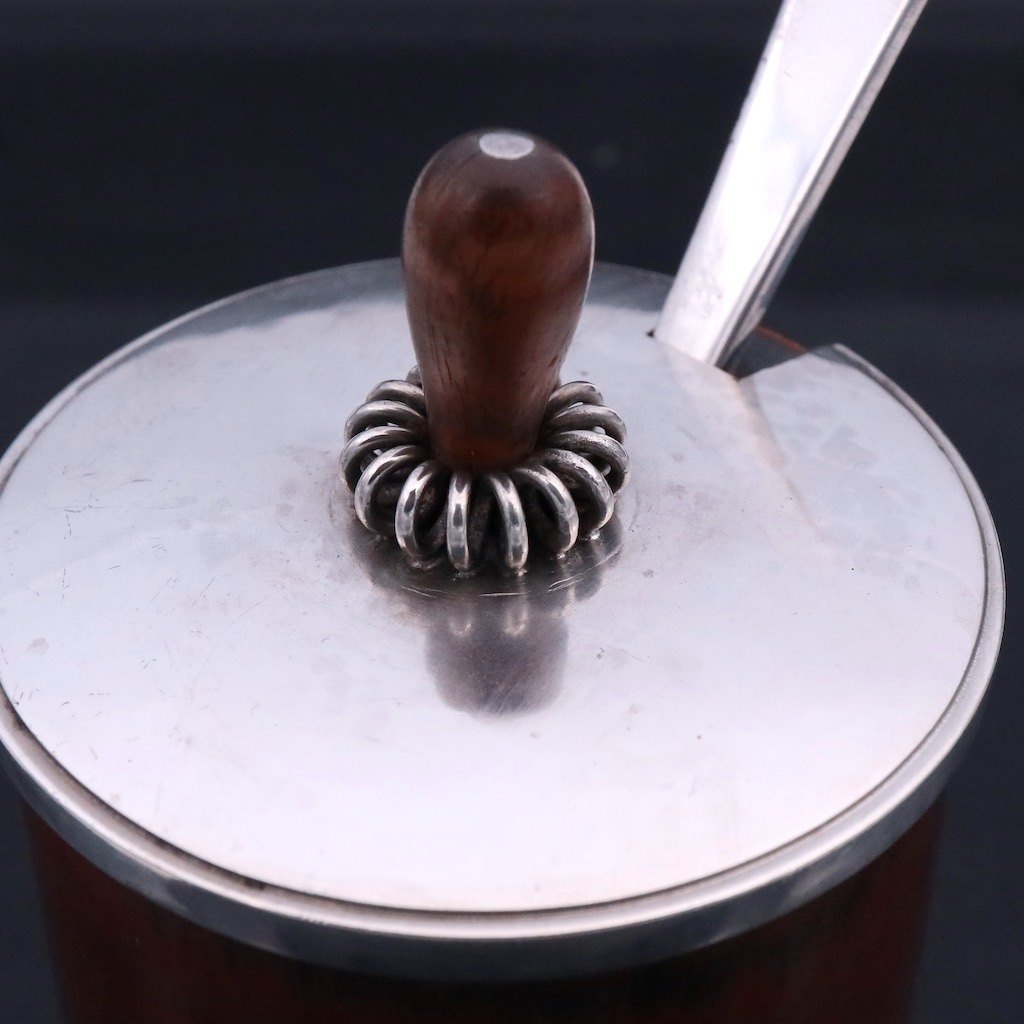 Saxbo - Hans Hansen. Krukke i stentøj med låg og ske i sterling sølv.