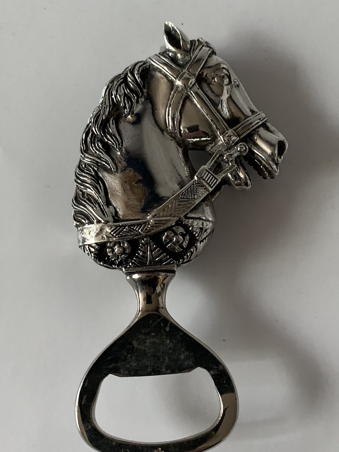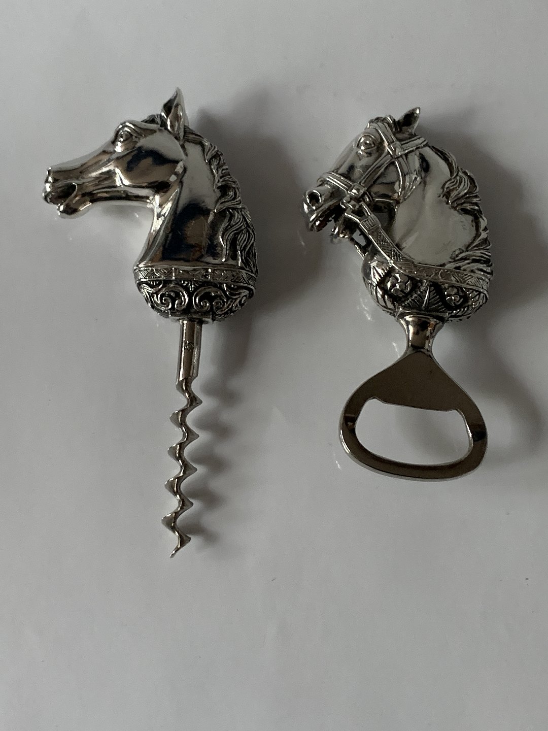 Dette er noget ud over det sædvanlige. Sættet her består af øl- og vinoplukker, og er meget sjældent. Hestehovederne er smedet i ægte sølv med uhørt høj detaljeringsgrad, der vidner om godt håndværk.