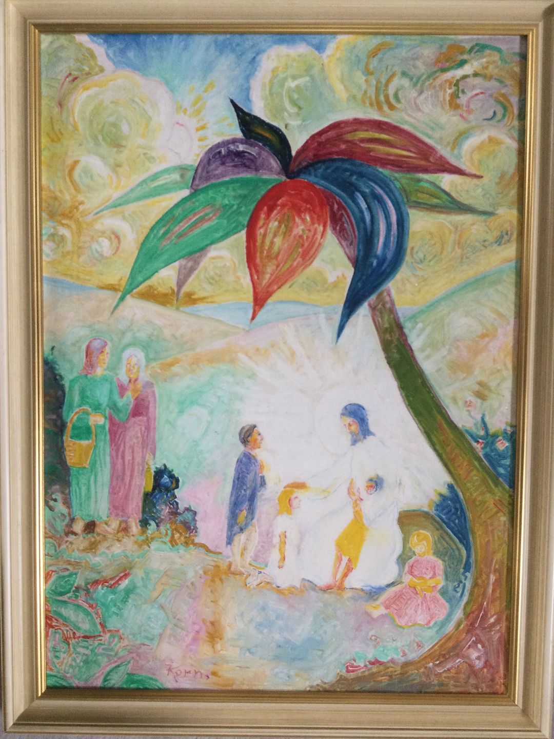 Maleri af H.J. Korn - Jesus og "Lad de små børn komme til mig"