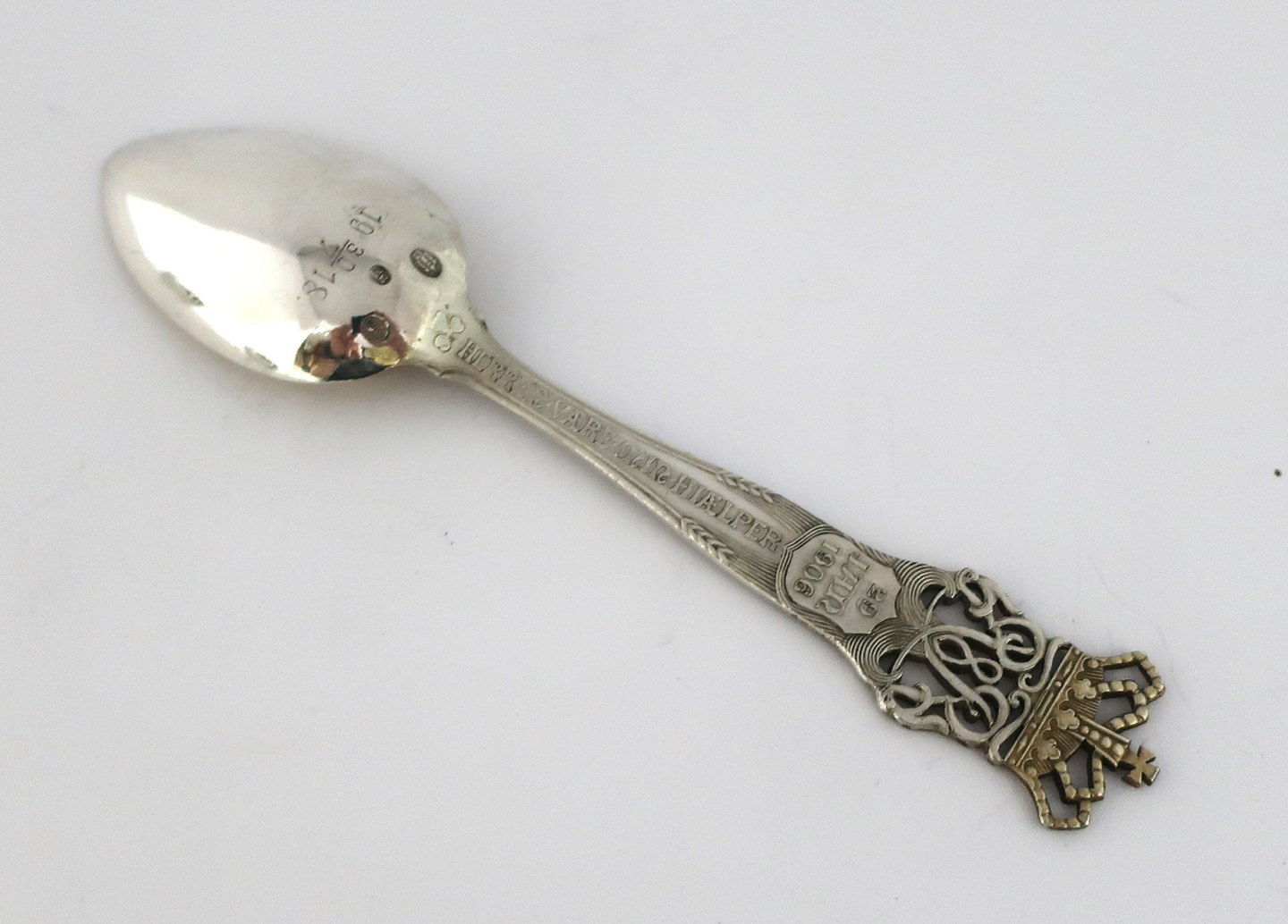 Michelsen. Sølv minde ske (830). Frederik d. 8's Kroning 29 januar 1906. Design Einar Ren. Med gravering.