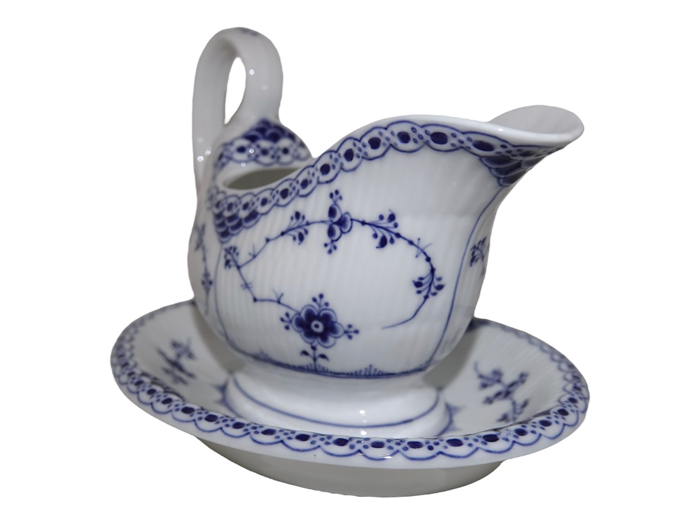 Royal Copenhagen Musselmalet Halvblonde, sovseskål på fast fod.