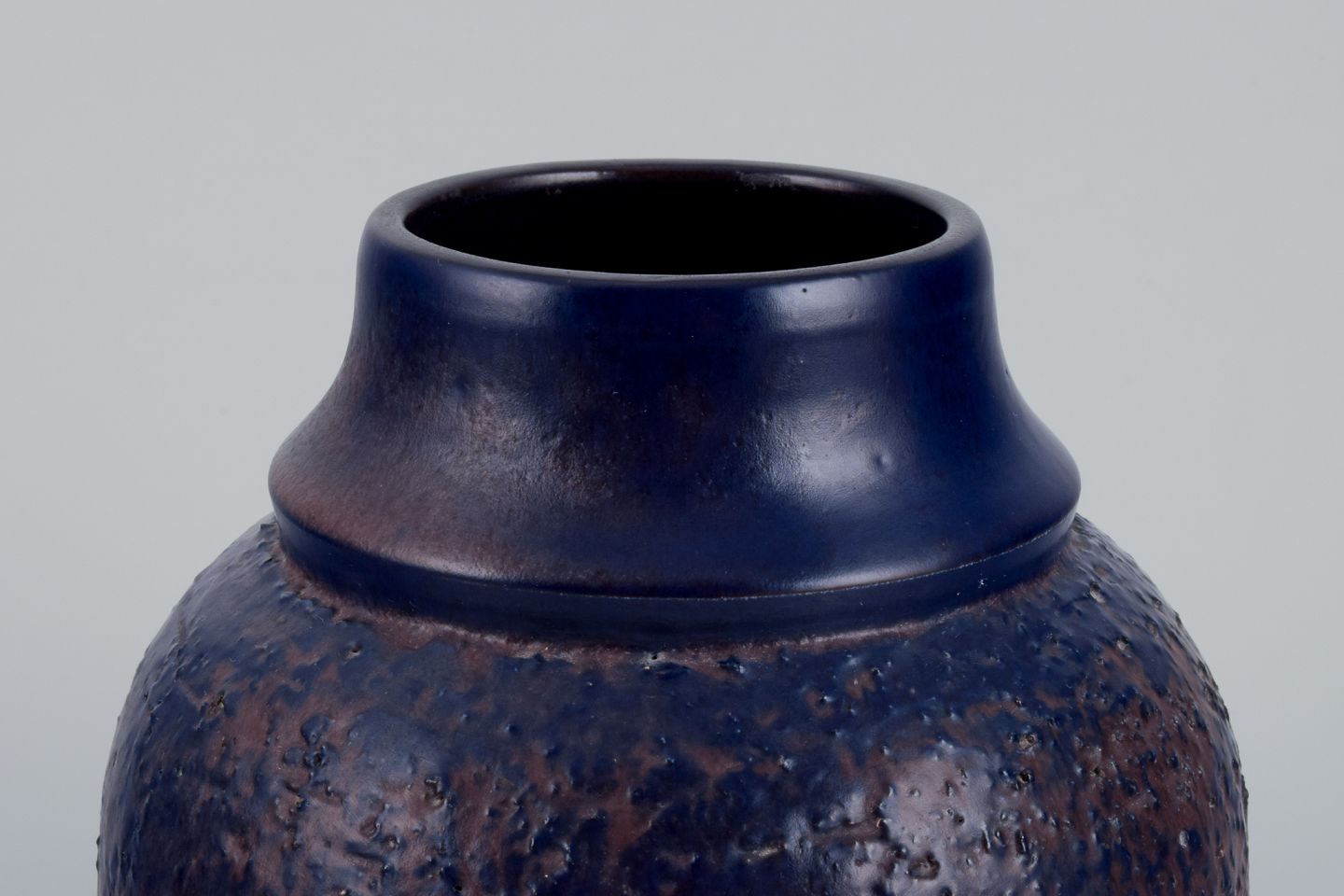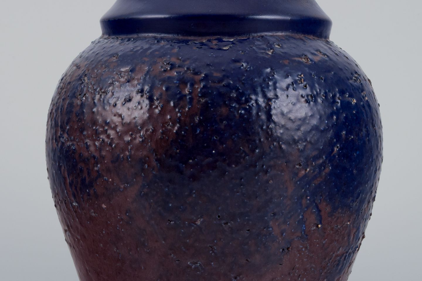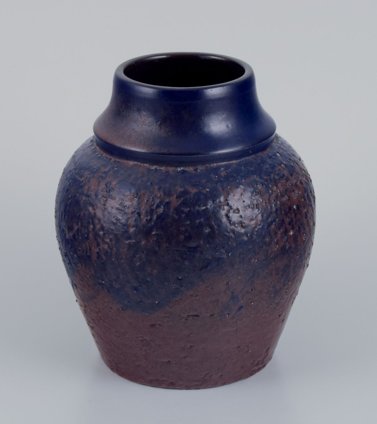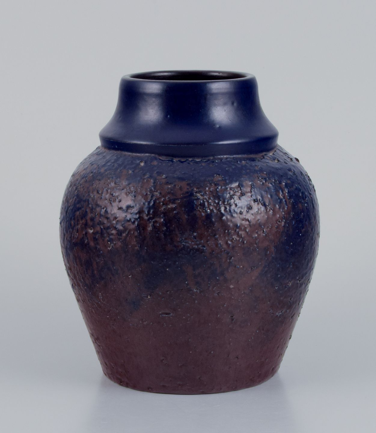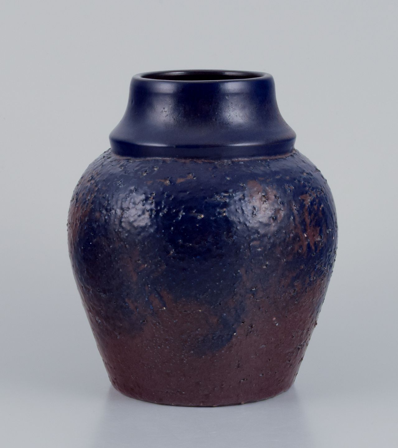 Mari Simmulson (1911-2000) for Upsala Ekeby, Sverige. Keramikvase med glasur i blå og brune toner.