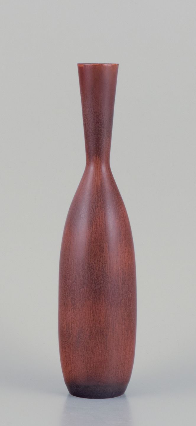 Carl Harry Stålhane (1920-1990) for Rörstrand. Stor keramikvase med slank hals. Glasur i brunlige nuancer.