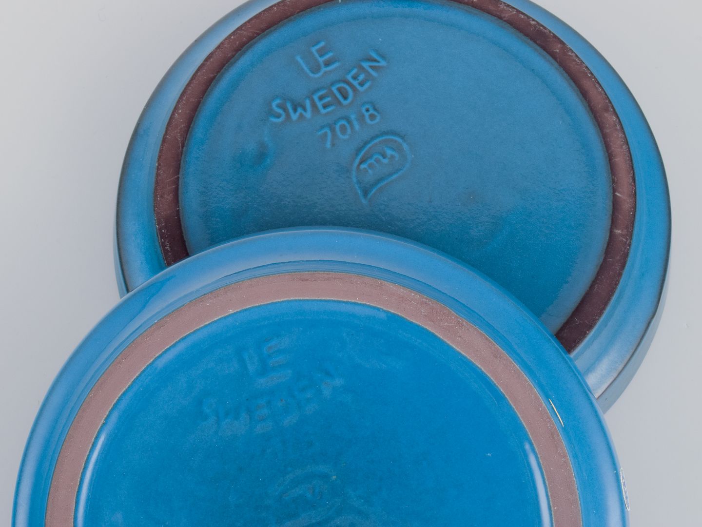 Et par lave keramikskåle med glasur i blå nuancer.