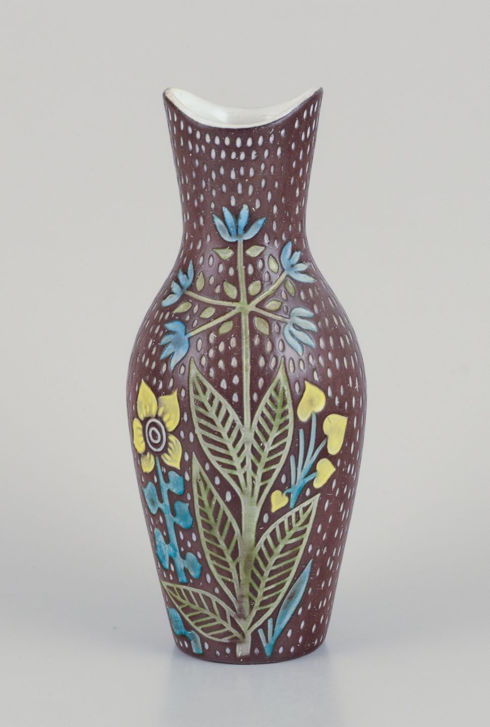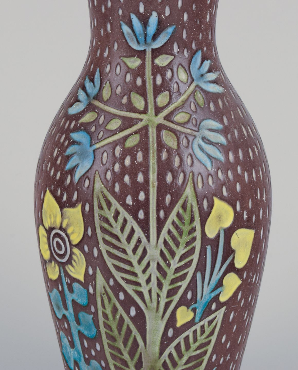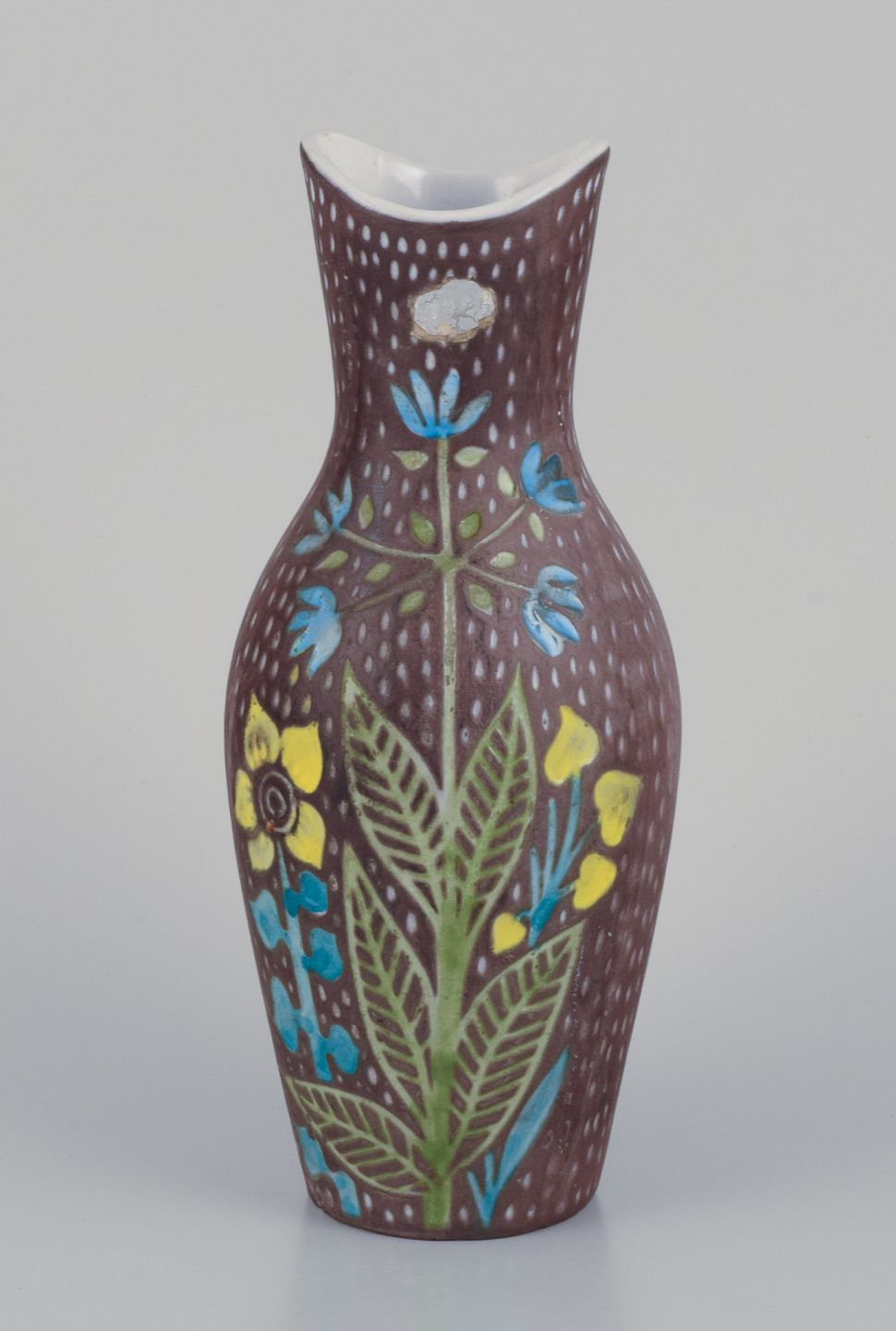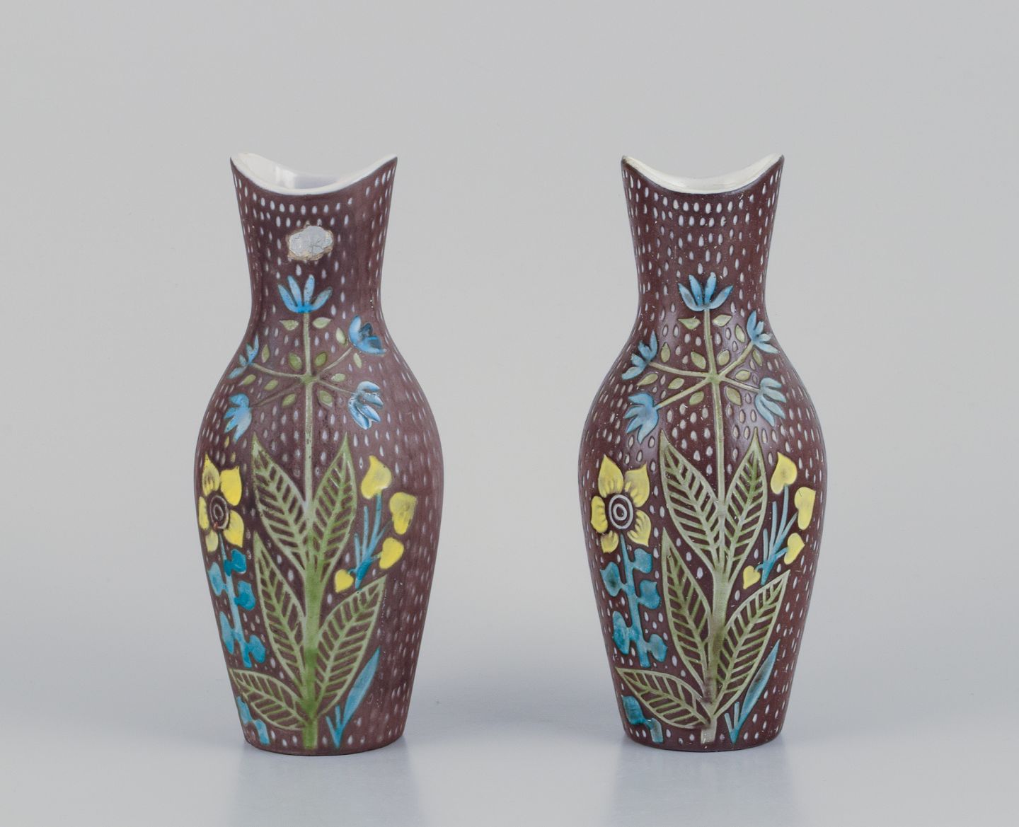 Mari Simmulson (1911-2000) for Upsala Ekeby. Et par keramikvaser. Blomstermotiver. Polykrom glasur.