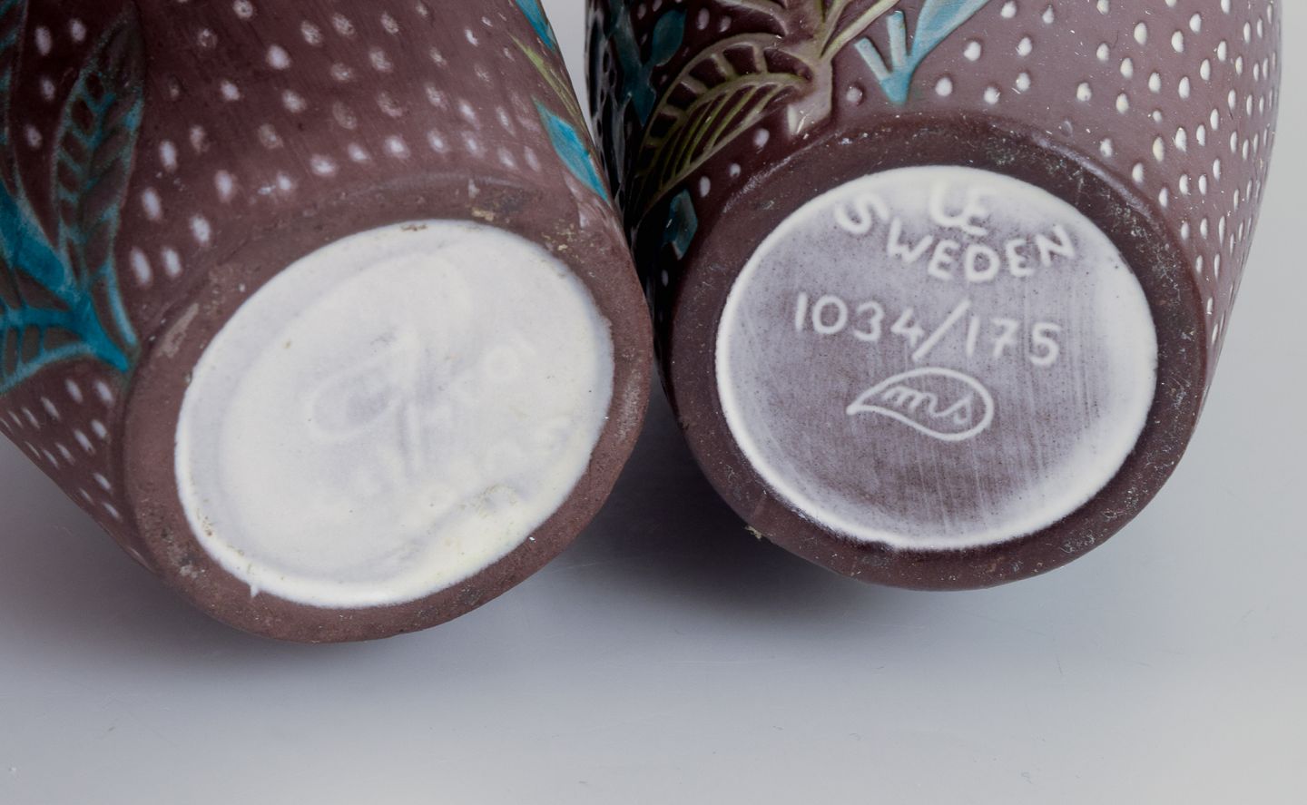 Mari Simmulson (1911-2000) for Upsala Ekeby. Et par keramikvaser. Blomstermotiver.