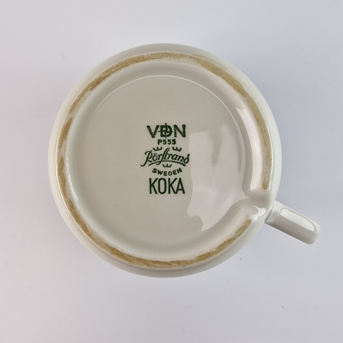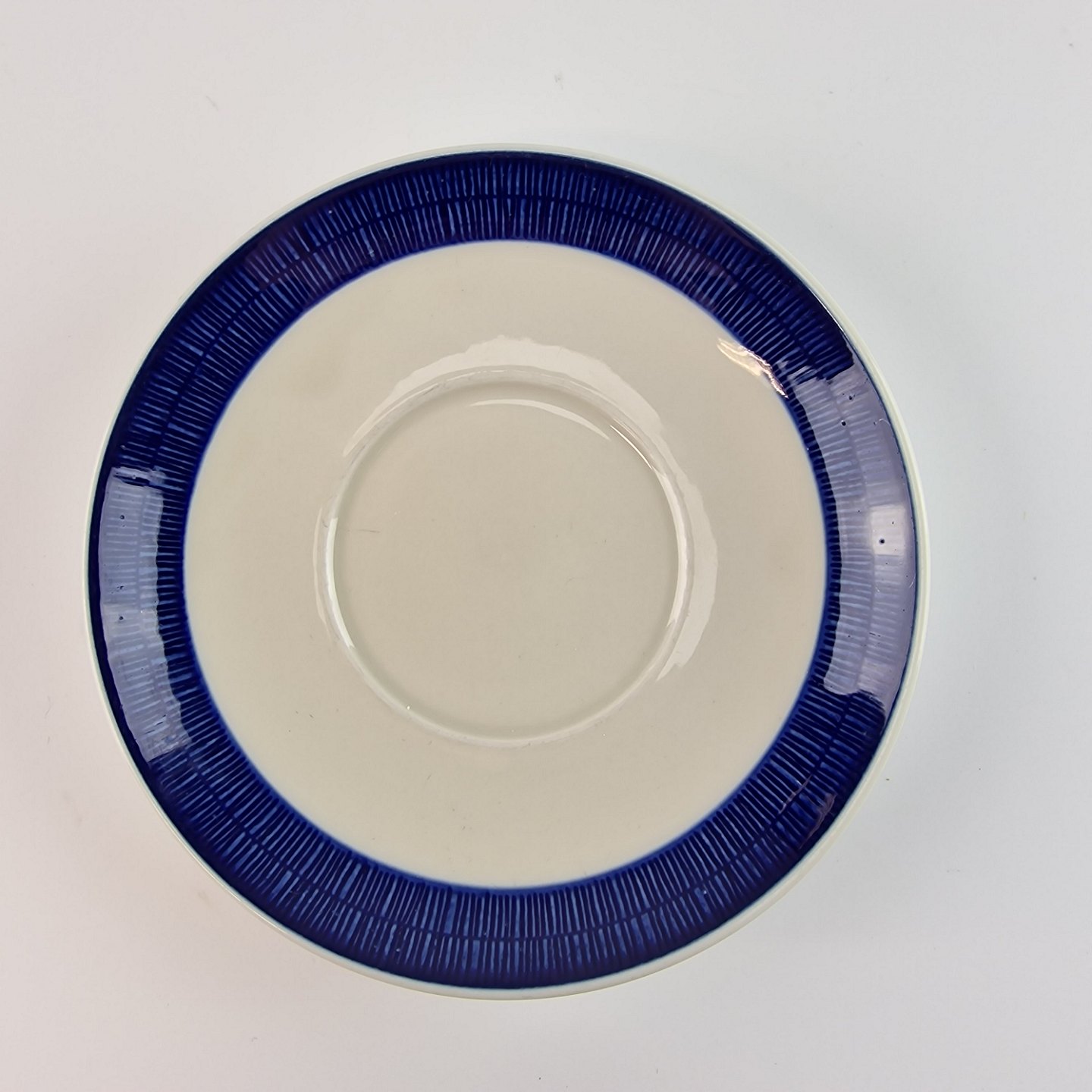 Blå Koka er af hvidt glaseret porcelæn med et bånd af mørk blå