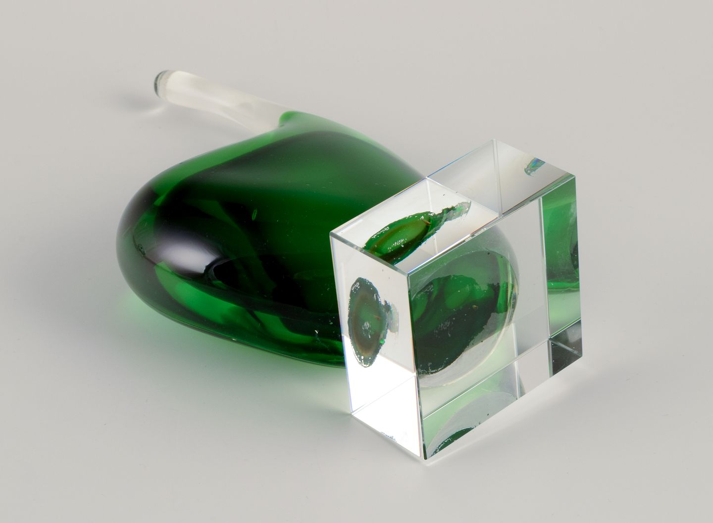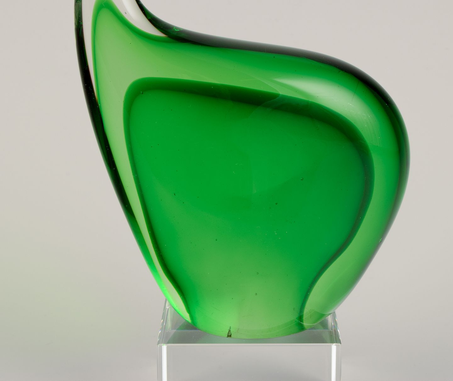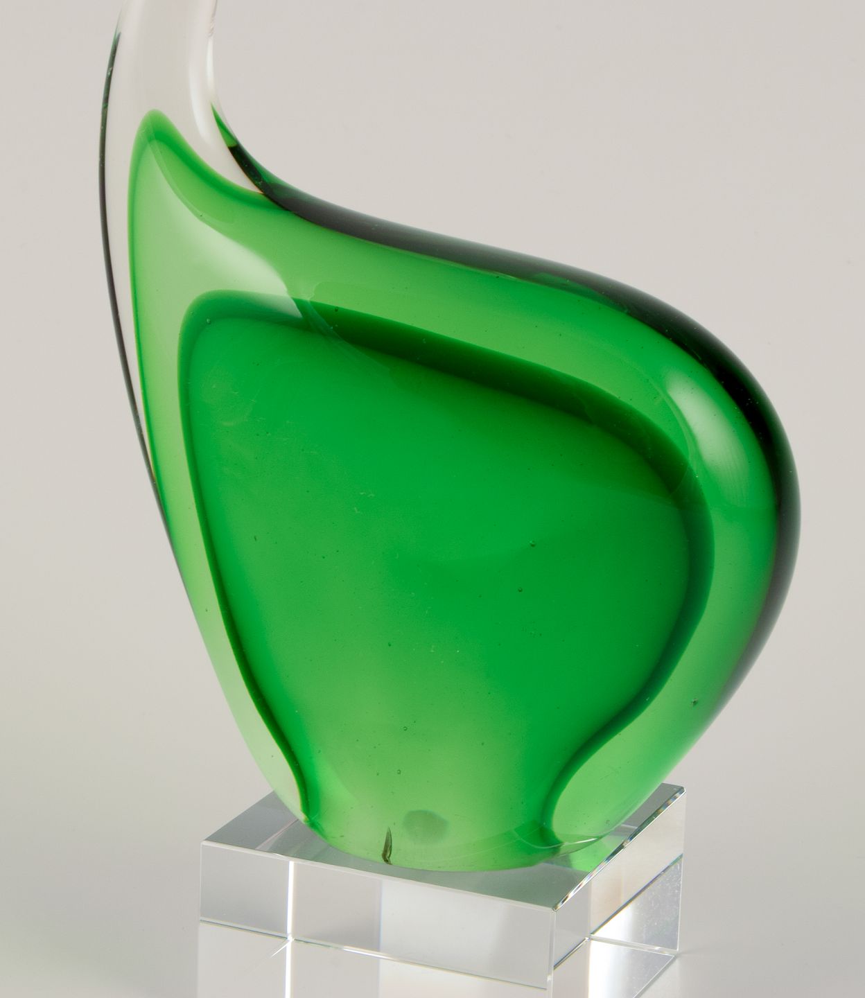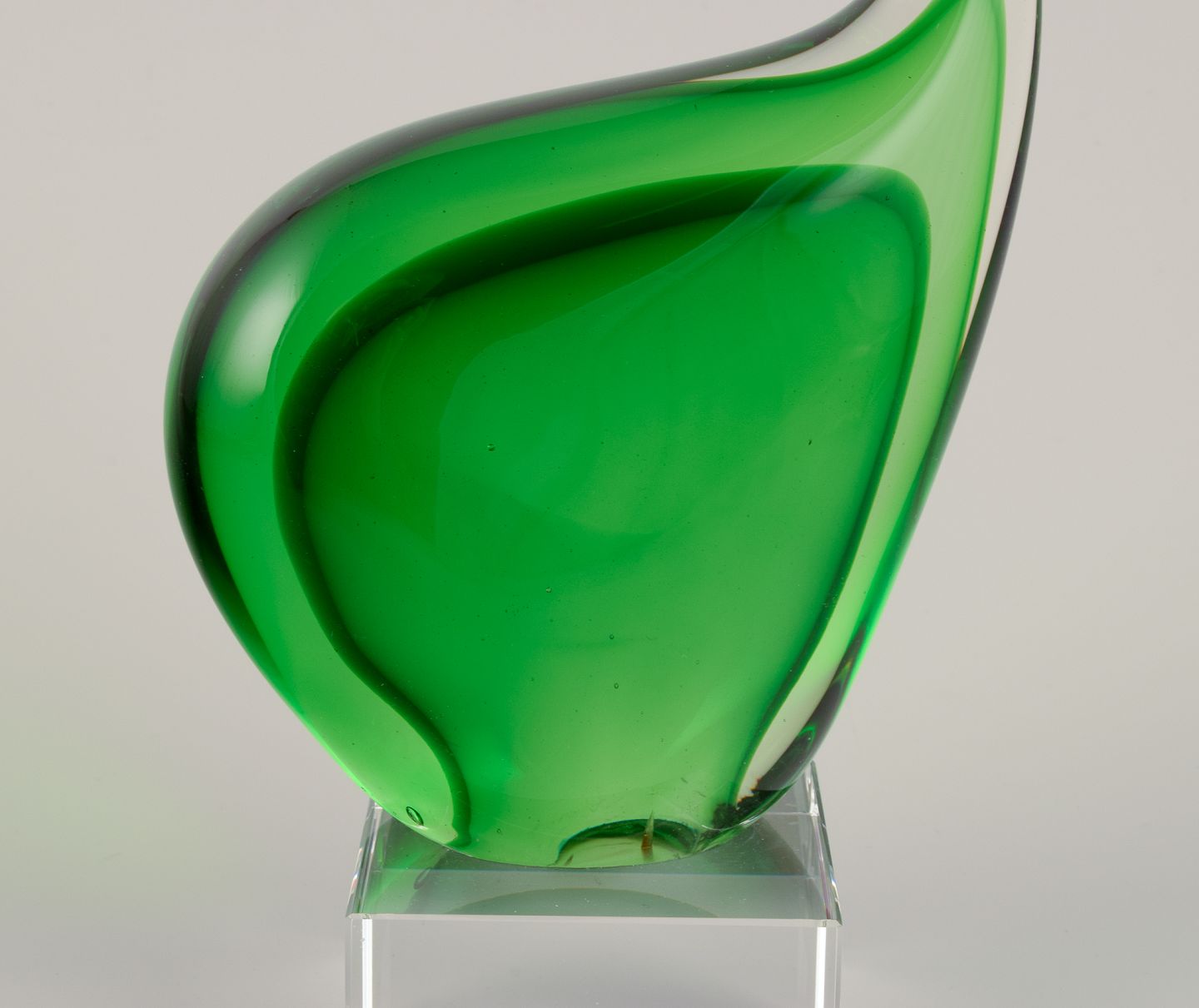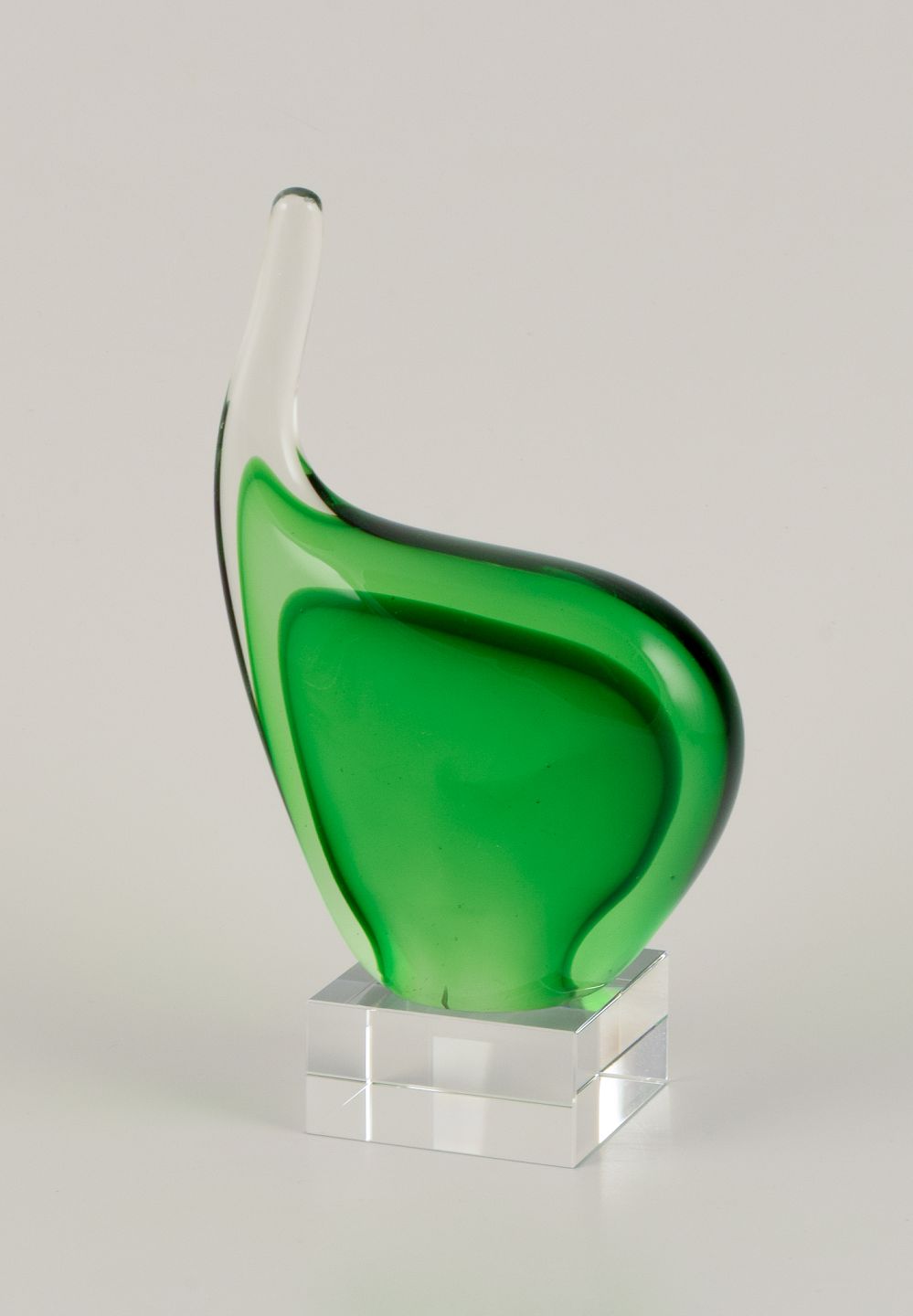 Per Lütken for Holmegaard. Sculpture in green art glass. On a base.