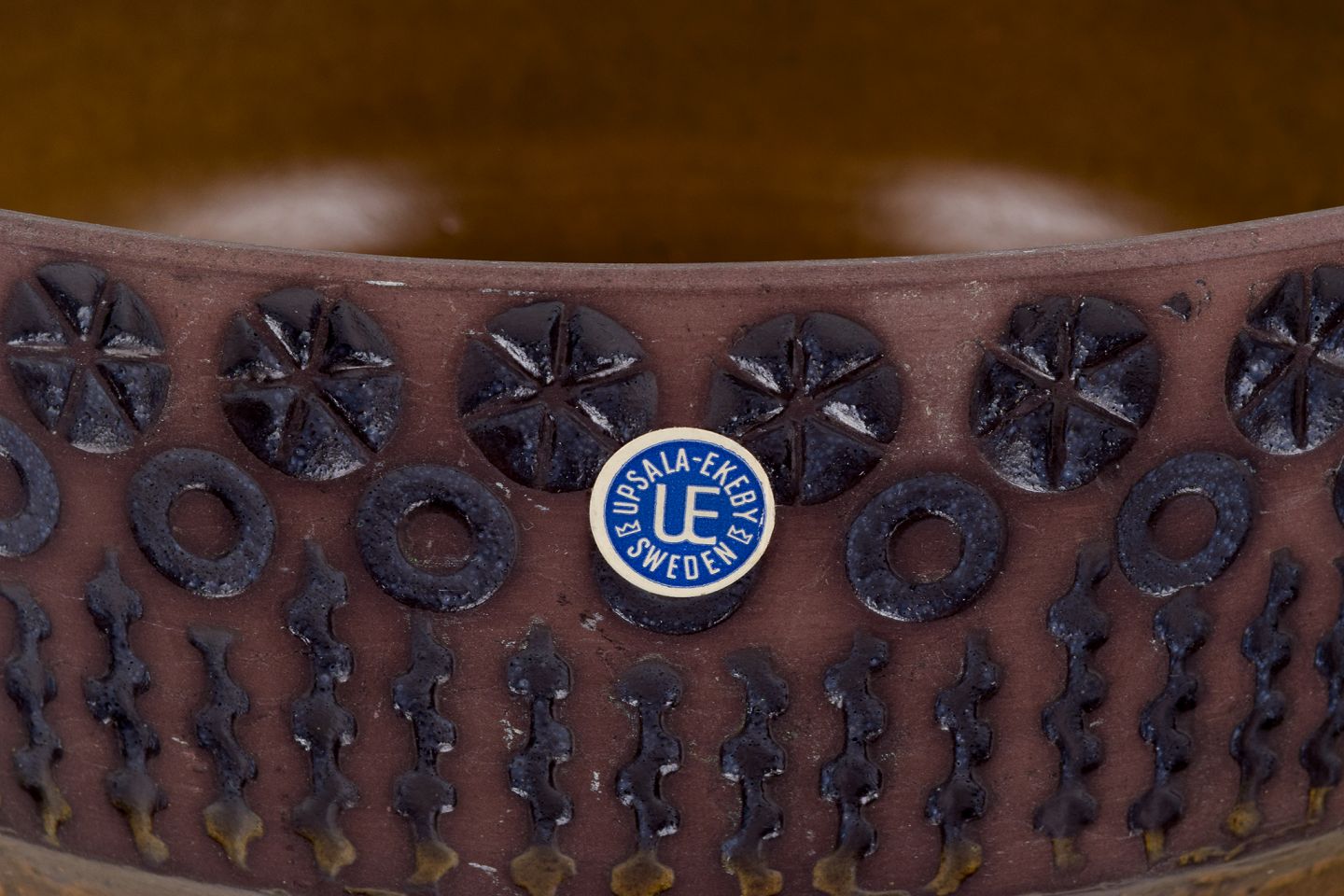 Mari Simmulson for Upsala Ekeby. Keramikskål i brun og grøn glasur.